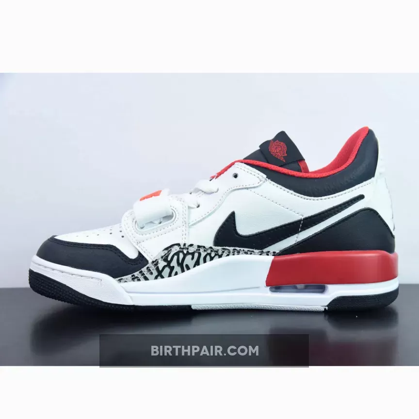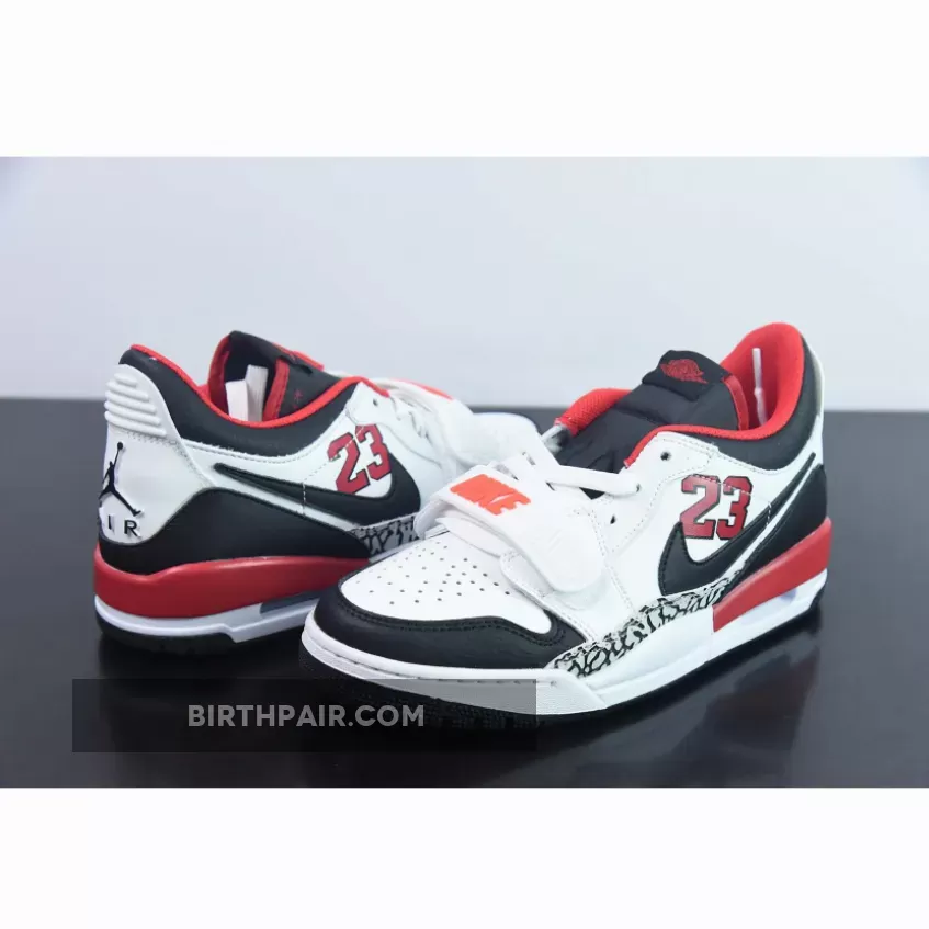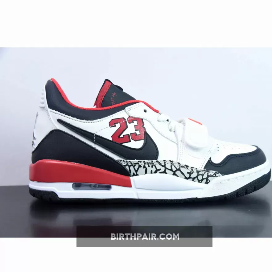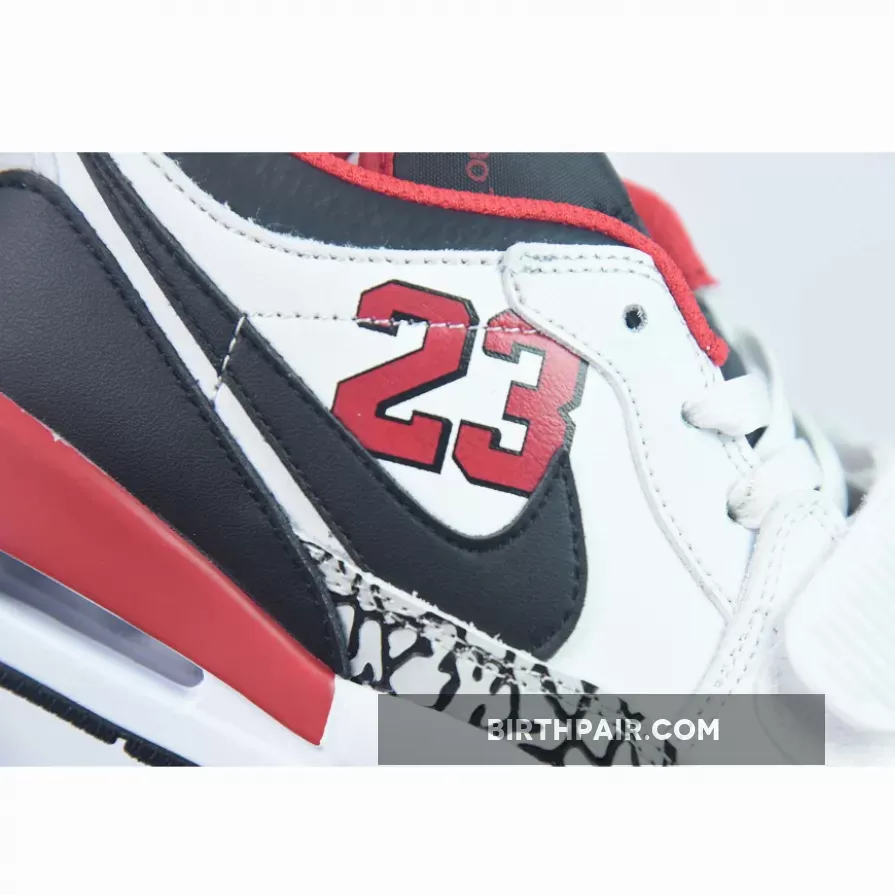 This offering of the Jordan Legacy 312 Low takes on a classic Chicago Bulls color makeup as the shoe gets covered in white, black, and red. Its white top is decorated with a black leather toe box, Swoosh, and a heel guard. At the same time, this pair including “23” logos on the lateral side panels, elephant print on the mudguards, and various Nike and Jordan branding throughout the sneaker.