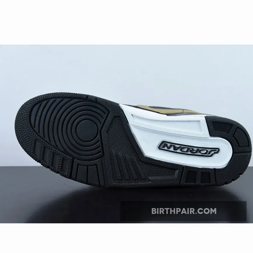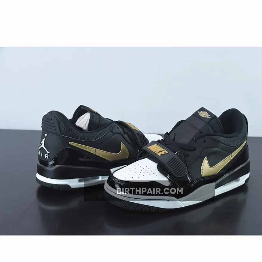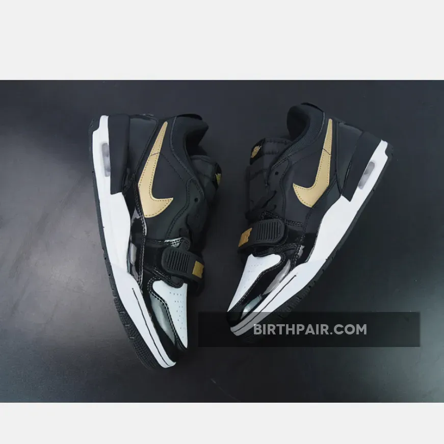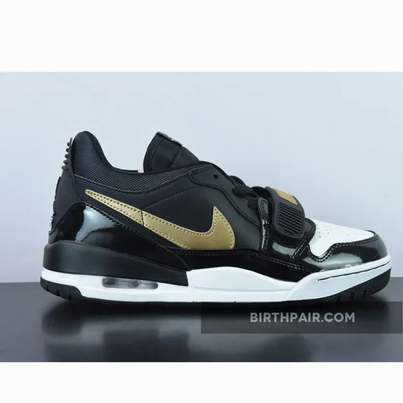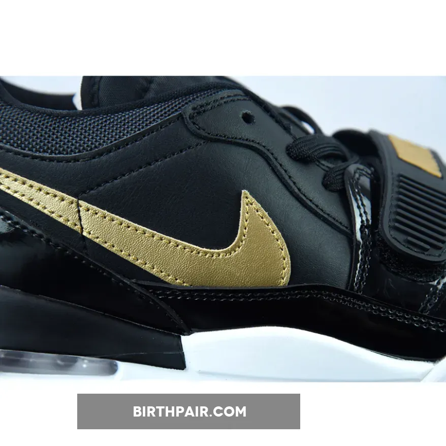 The Jordan Legacy 312 Low Patent Black Gold has all the elements sneakerheads love in a sleek sneaker. It has a dynamic design and a versatile colourway that’s anything but garden-variety. This particular pair comes with a mixed upper: smooth white leather for the perforated toe, black patent leather for the mudguard, grainy leather for the side panels and black mesh for the collar.