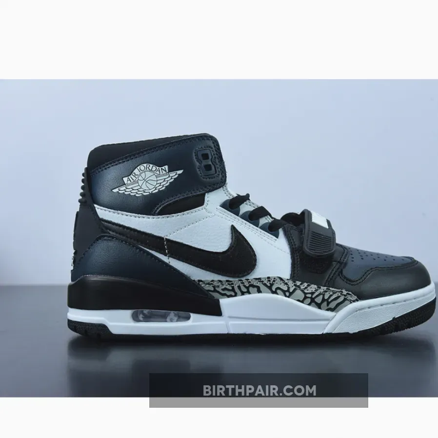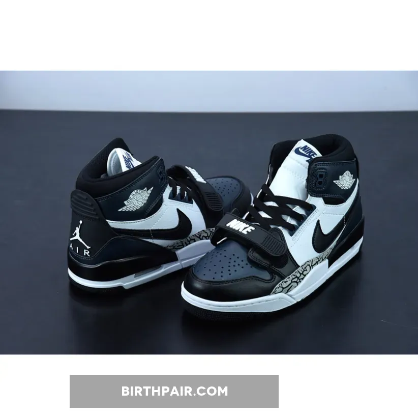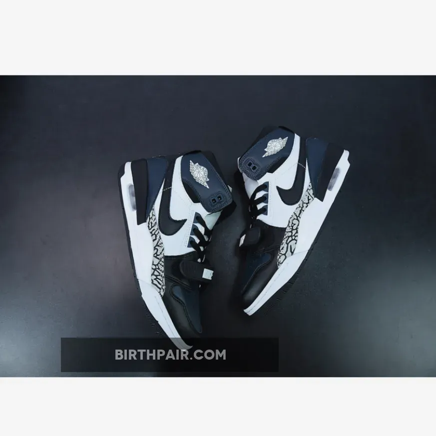 The Jordan Legacy 312 combines key parts and features from some of your favorite Air Jordan models. This new colorway starts off with a leather construction done in a White, Black, and Navy color scheme. Notable details include the elephant print overlays on the forefoot, White Wings branding on the ankle, Jumpman branding on the insoles and heels, “NIKE” branding on the midfoot strap and Nike Air branding on the tongue tags.