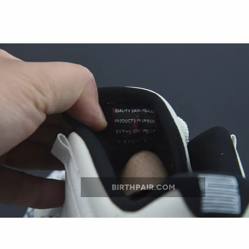 This new edition of the 11 Low ditched the dark detailing and opts for a light-boned microsuede upper, paired with a milky-white outsole and black hits on the traction and sock liner.