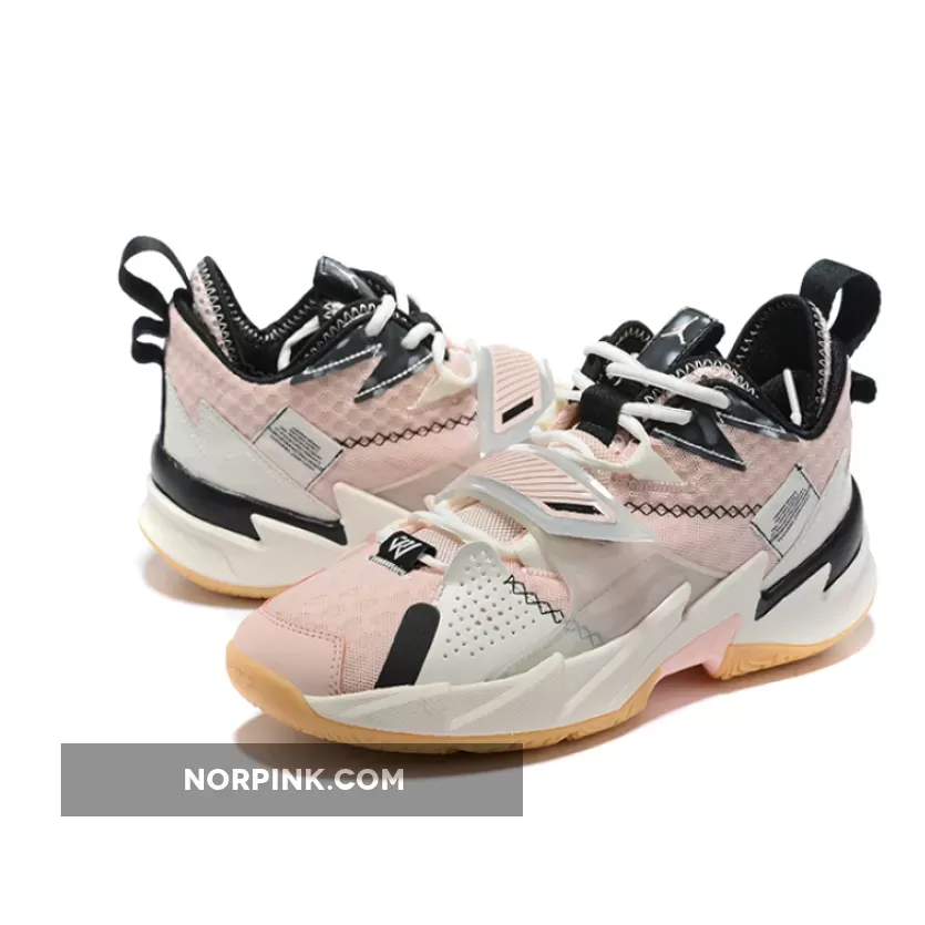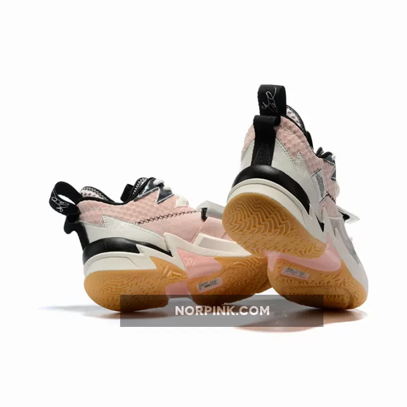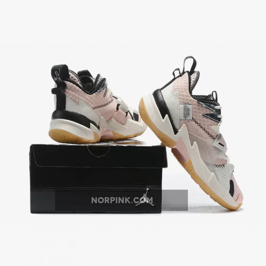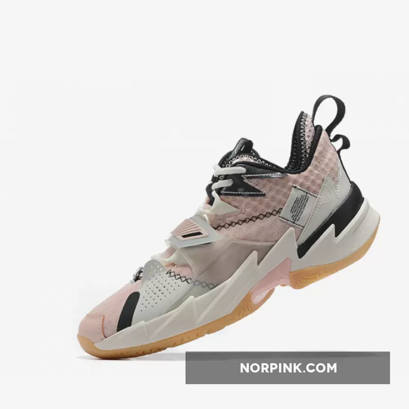Dressed in a Washed Coral, Pink Tint, Pale Ivory, and Black color scheme. This Jordan Why Not Zer0.3 features a Pink base with a translucence midfoot strap paired with Black detailing throughout.