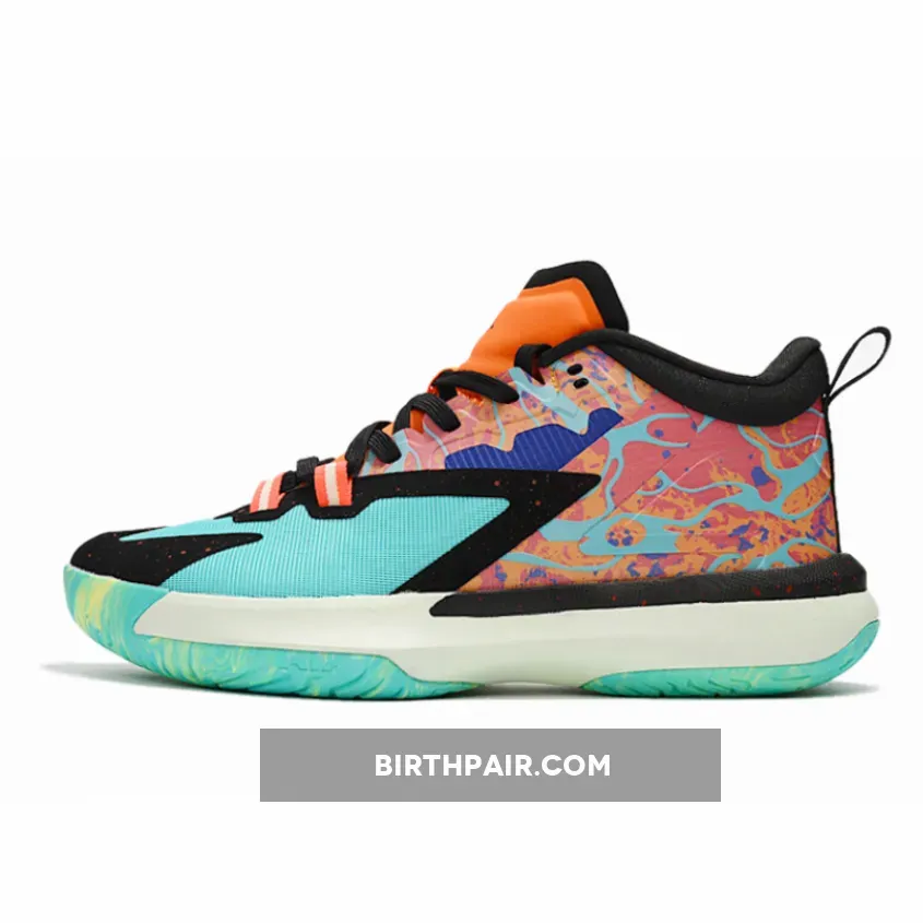 the silhouette’s newest colorway, dubbed “Hyper Jade,” features a graphical element far more dynamic than offerings prior. Liquid-like motifs are emblazoned across the side, their orange and blue shades visually akin to a lava lamp.