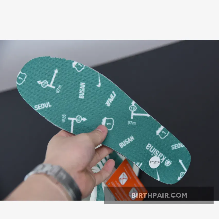 Made in collaboration with the Korean retailer, the Kasina x Nike Dunk Low ‘Road Sign’ features colors inspired by the signage that lines the major highway connecting Busan and Seoul. The upper combines off-white leather with Neptune Green suede overlays and a grey suede Swoosh. Navy blue heel tabs replace Nike branding with ‘Busan’ and ‘Seoul’ on the left and right shoe. Additional details include Kasina’s logo on the lateral heel and the retailer’s name printed in Korean lettering on the tongue tag.