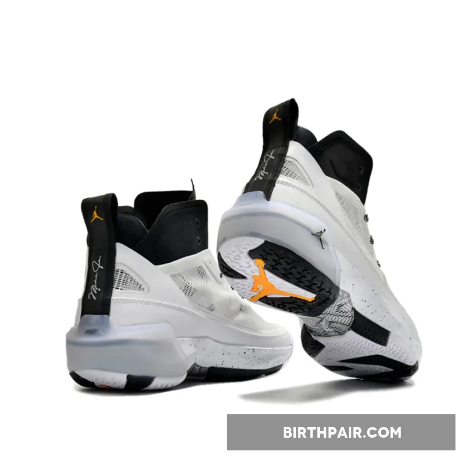 “I’m really impressed with the Air Jordan 37 Oreo! ? The Lenoweave upper is super breathable and comfy, while the Zoom Air cushioning provides great support. ?️♂️ The colorway is also on point – love the contrast of white, black, and citrus! ⭐️⭐️⭐️”
