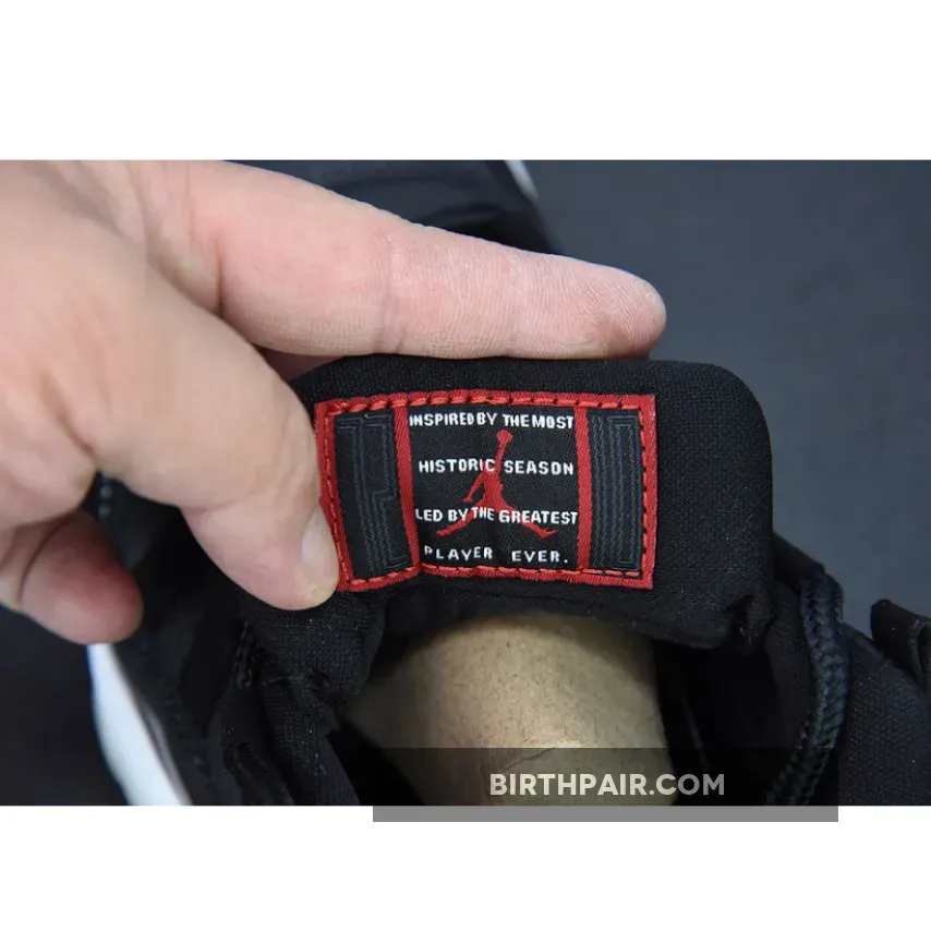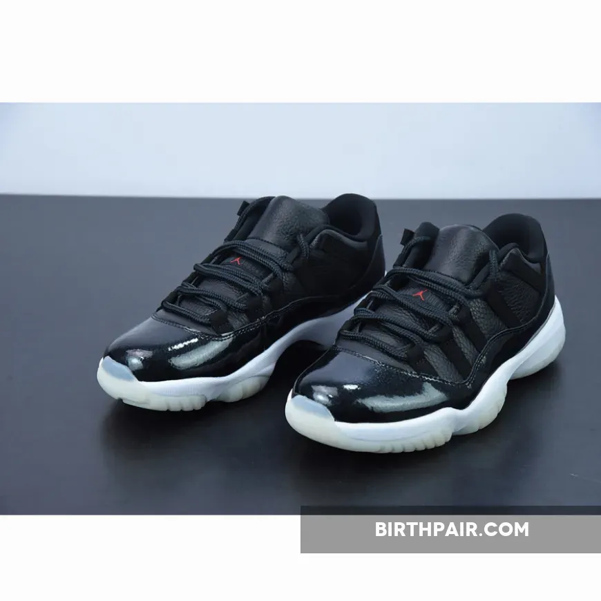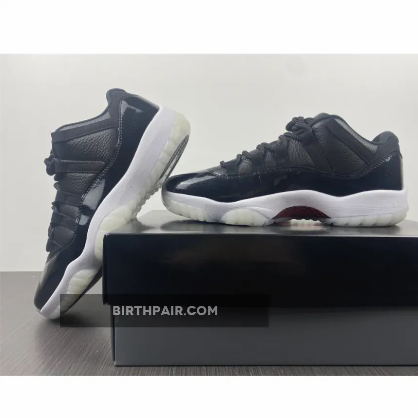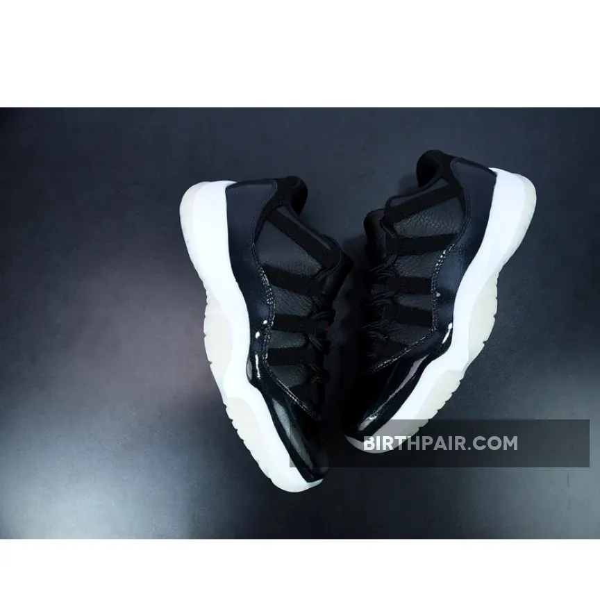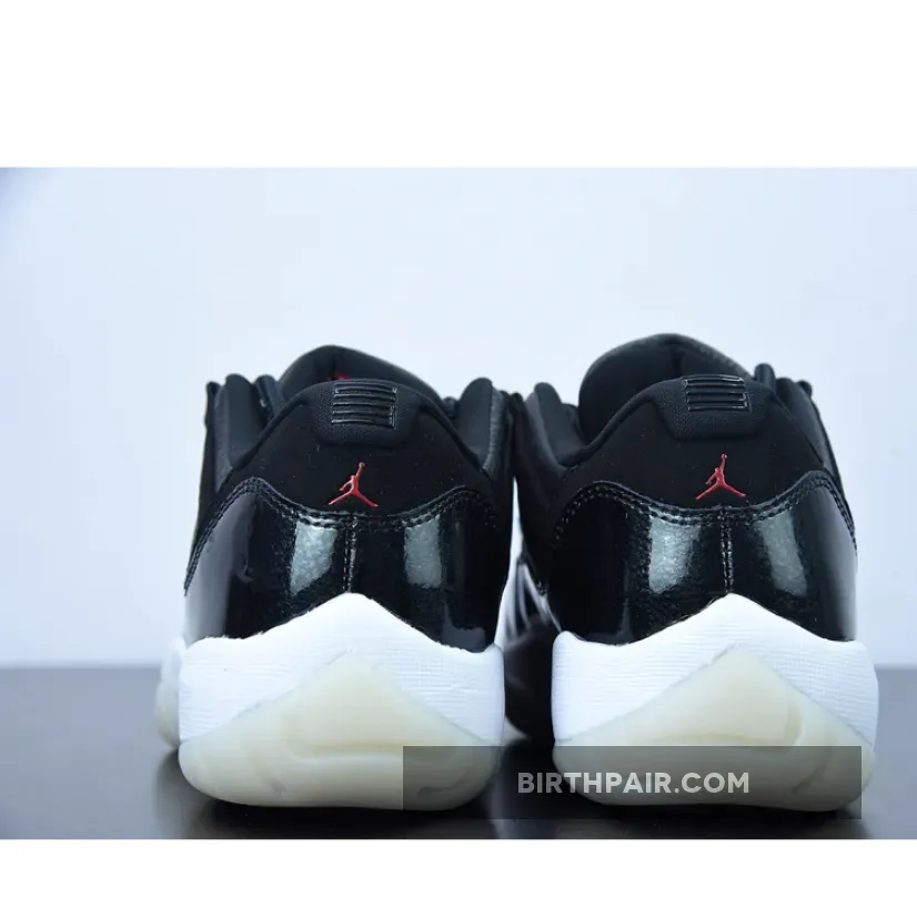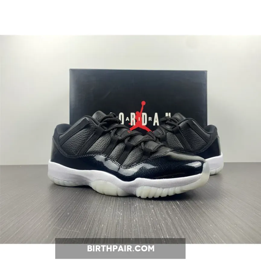 The shoes are a nod to the Chicago Bulls‘ 1995-1996 NBA season when Michael Jordan, Scottie Pippen, Dennis Rodman and company achieved a 72 wins and 10 losses in the regular season — the second greatest record in the league’s history to-date. It also harks back to 2015 when the original Air Jordan 11 model released with this same exact theme. Much like the rendition from seven years ago, the uppers arrive engineered with a solid black tumbled leather material that makes up the side walls and the tongues. “Gym Red” accents appear on the Jumpman insignias atop the heels and banners on the middle of the throat, while the “23” hits on the rear blend in with its stealthy backdrop. Mudguards discards their customary patent leather material and instead brings in a premium leather that is coated with a slightly shimmery gloss.