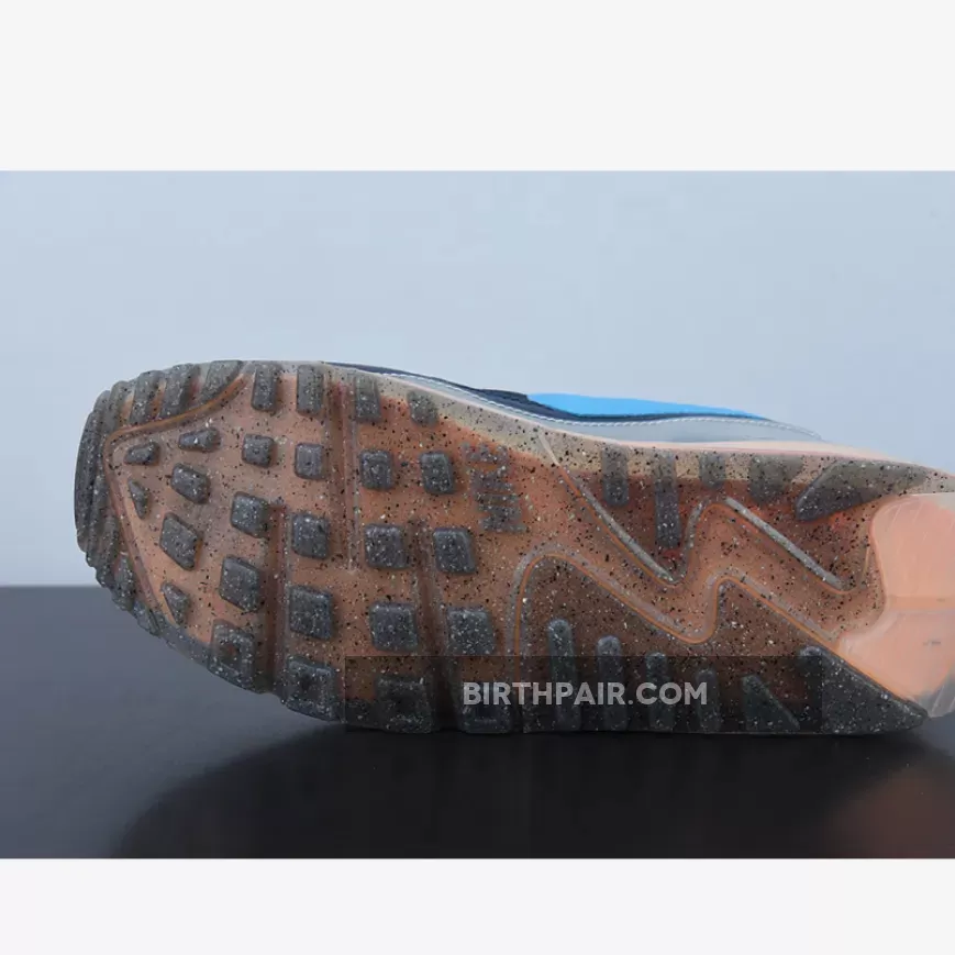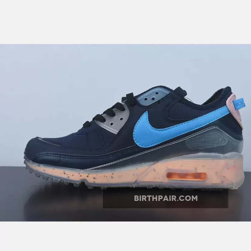 Official images have landed of the Nike Air Max 90 Terrascape Obsidian showcasing the sneaker in all of its glory. Constructed out of recycled materials and fabrics throughout, this Nike Air Max 90 takes on an official color scheme of Obsidian, Marina, and Thunder Blue. Standout details include a semi-translucent midsole, a Crater Foam speckled outsole, and “Terrascape” branding on the tongue pull tabs and insoles.