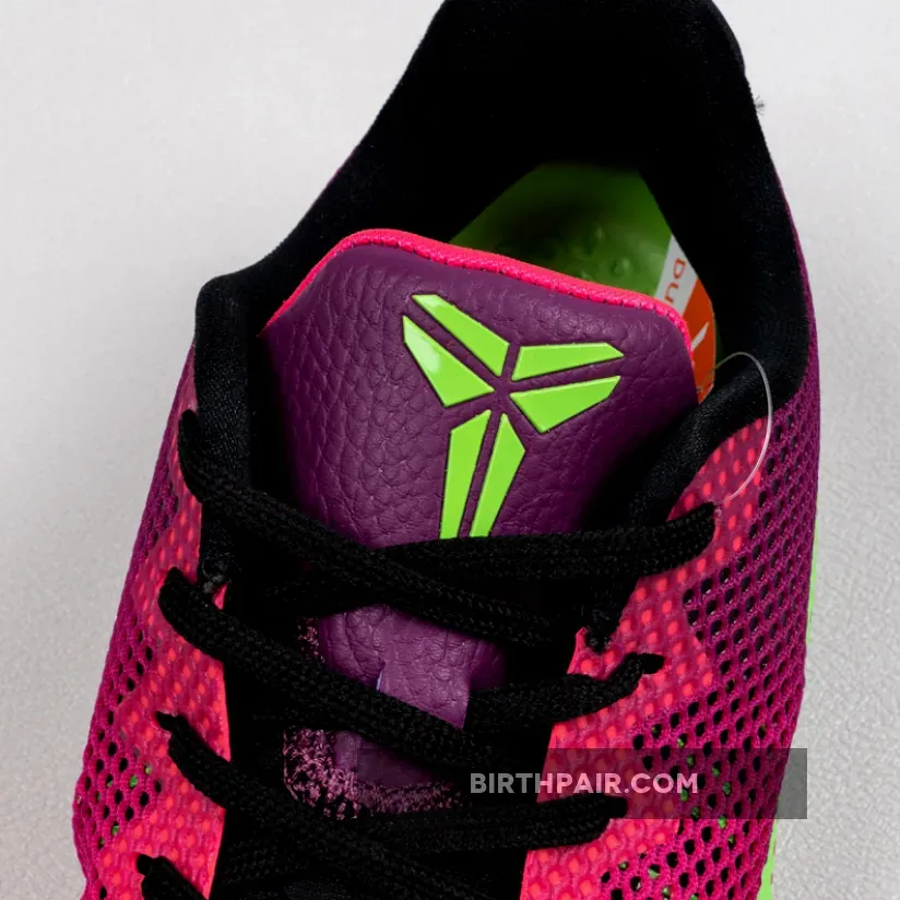 This Nike Kobe 11 is more traditional to the Kobe 8 that released a few years ago. Dressed in a Pink Flash, Action Green and Red Plum color scheme. The shoe is highlighted with the “NIKE” branding on the heels.