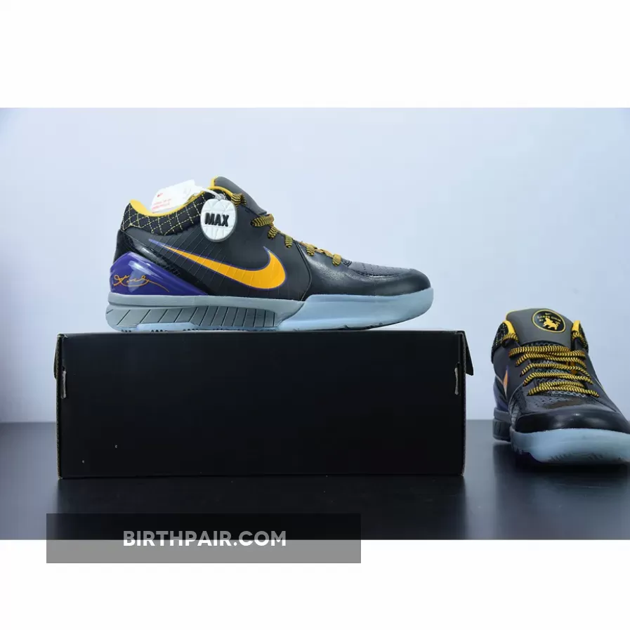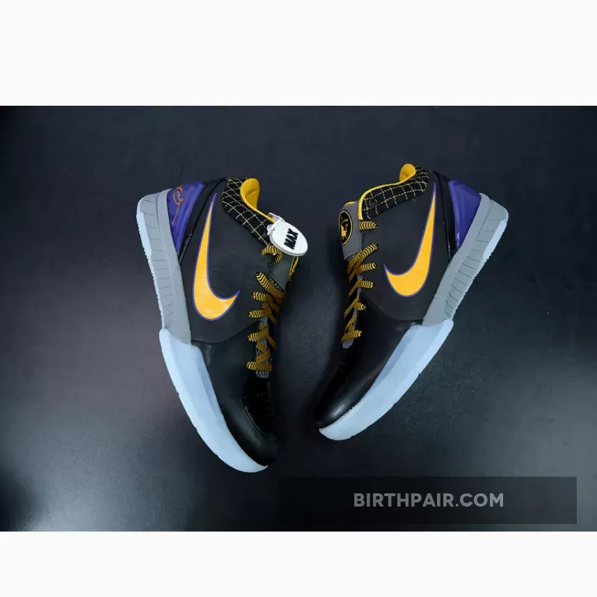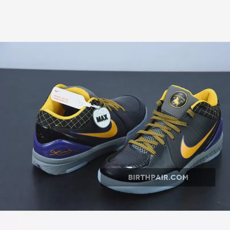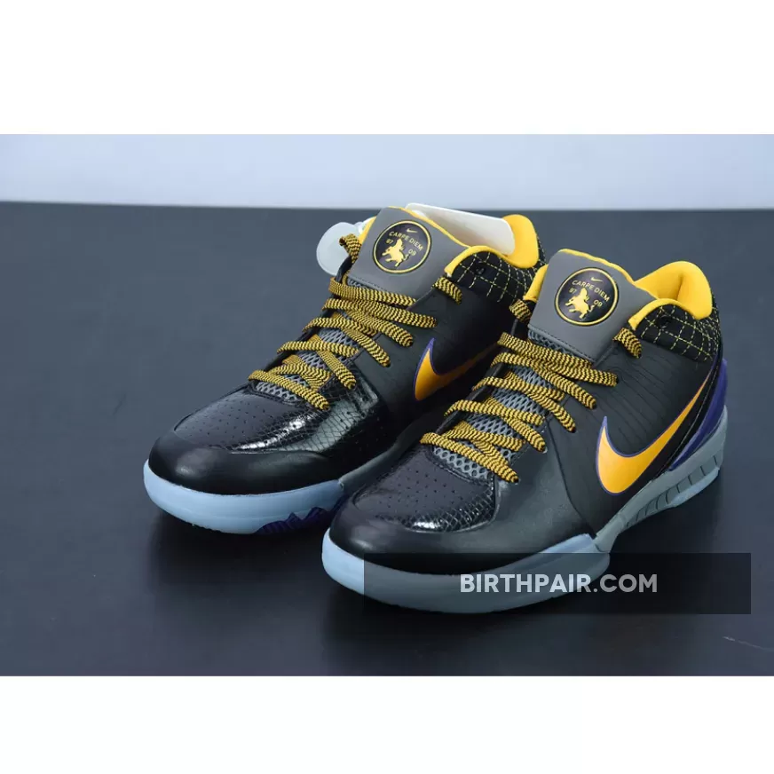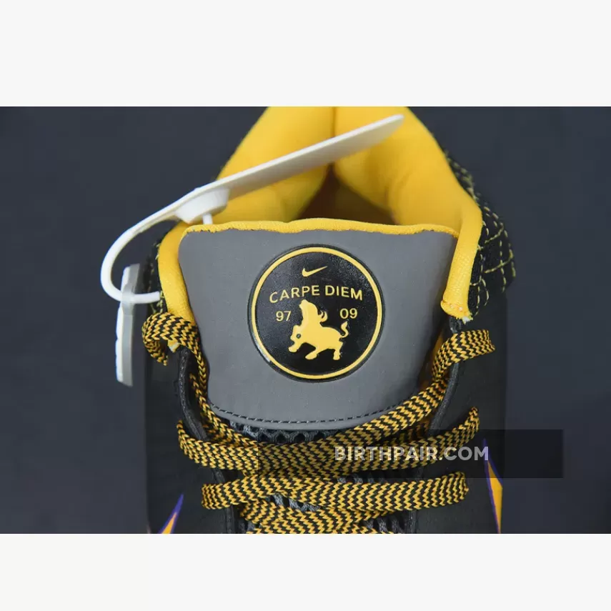 This Nike Kobe 4 Protro features a Black leather upper with its signature Flywire technology on the sides contrasted with Lakers Purple and Gold accents. Finishing off the design is the “Carpe Diem” logo on the tongues.
