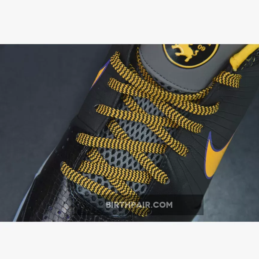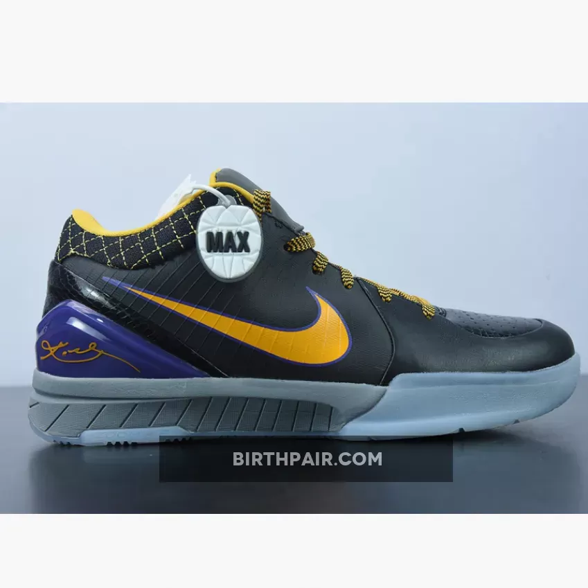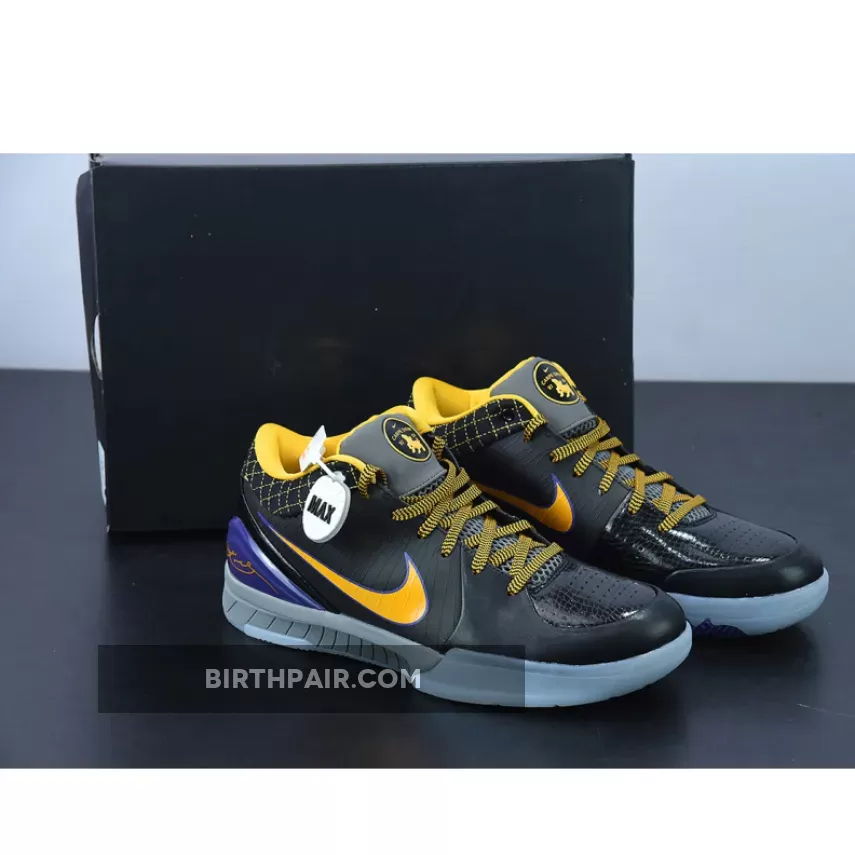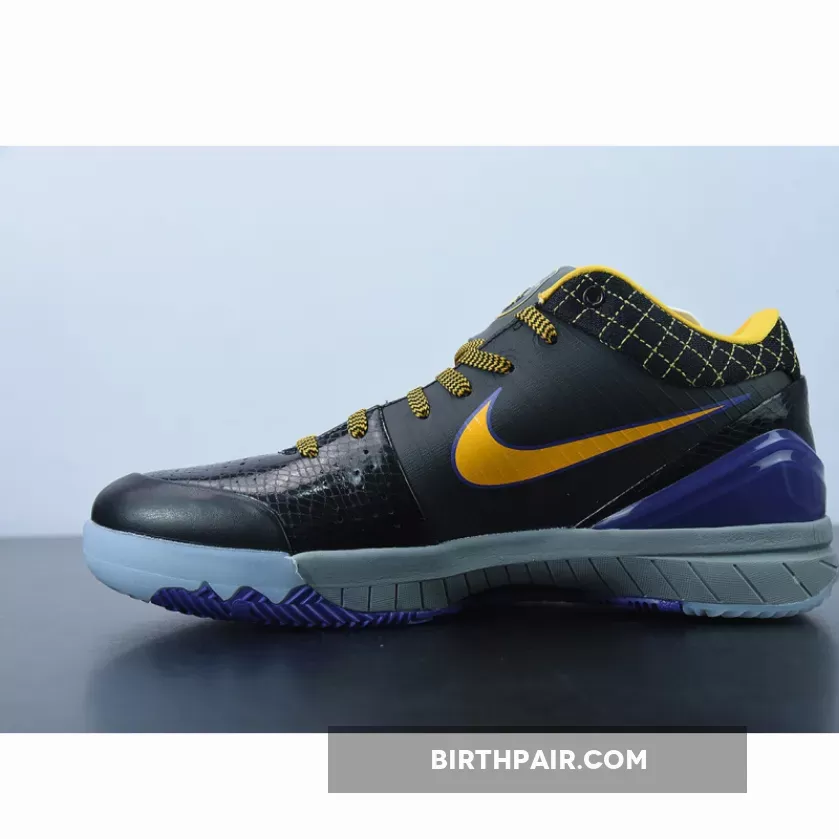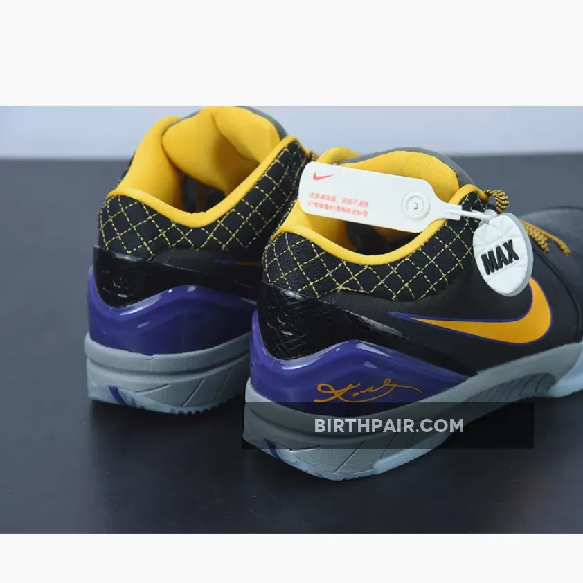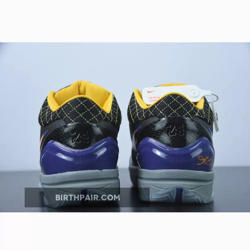 This Nike Kobe 4 Protro features a Black leather upper with its signature Flywire technology on the sides contrasted with Lakers Purple and Gold accents. Finishing off the design is the “Carpe Diem” logo on the tongues.