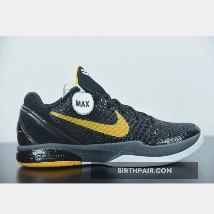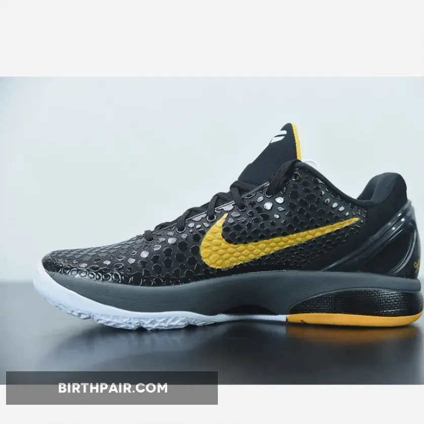 Dressed in a Black, Dark Grey, White, and Del Sol color scheme. No leaked photos have surfaced, but this Nike Kobe 6 Protro is expected to look like the original with a Black-based upper, Yellow Swooshes and White appearing on the sole.