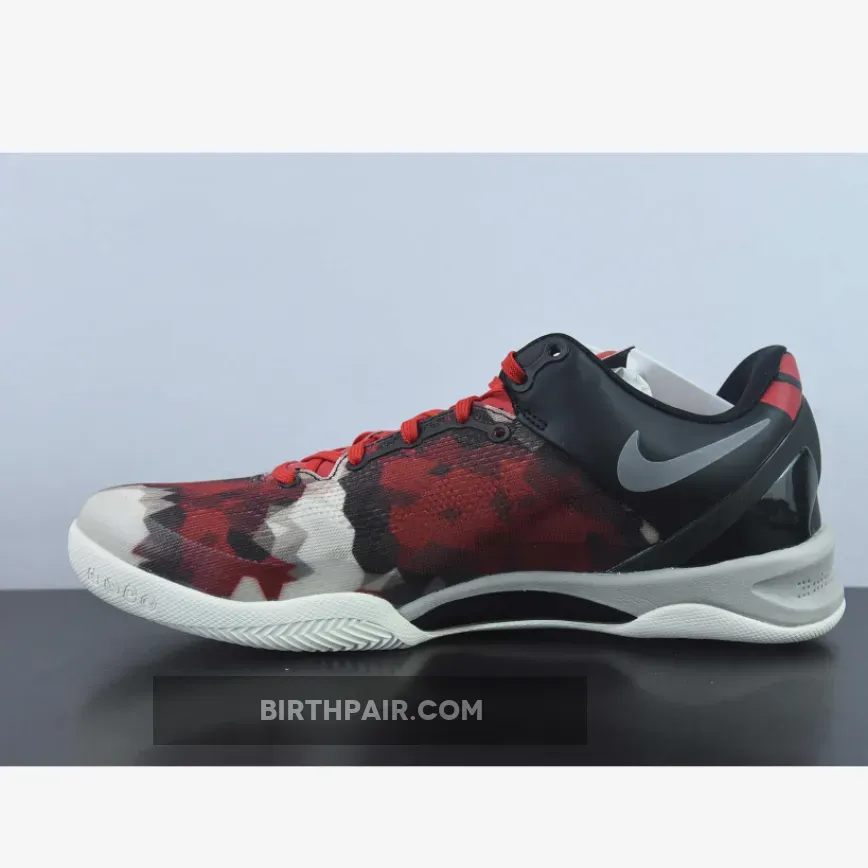 This latest colorway of the Nike Kobe 8 System is known as the “Milk Snake” edition. They come in a university red, sail, noble red and pearl grey colorway. Featuring a camouflage design on the upper.