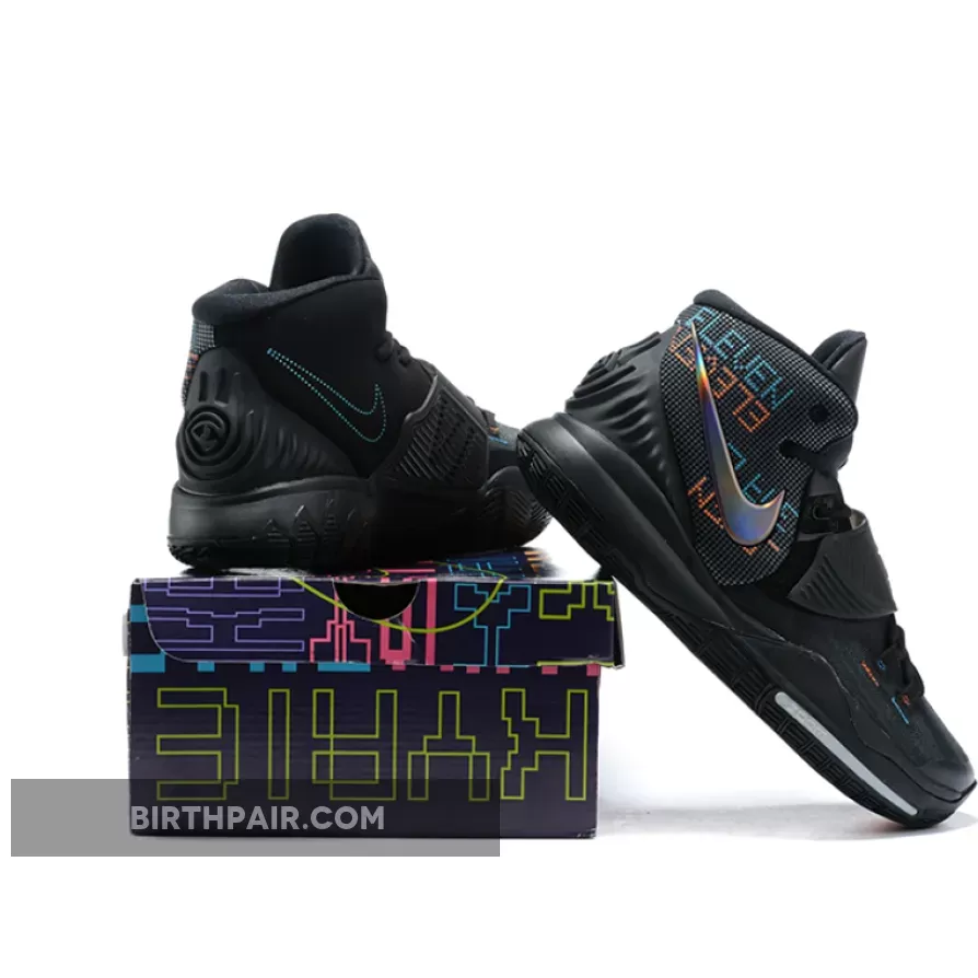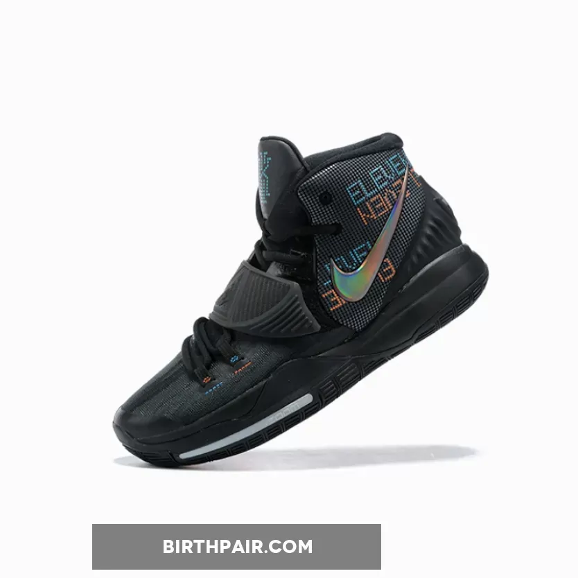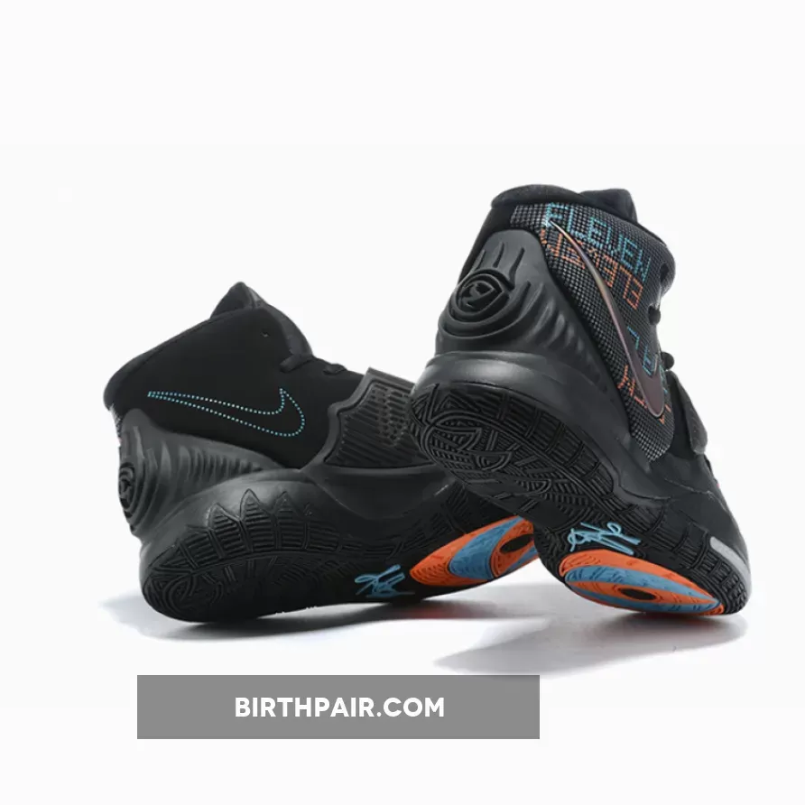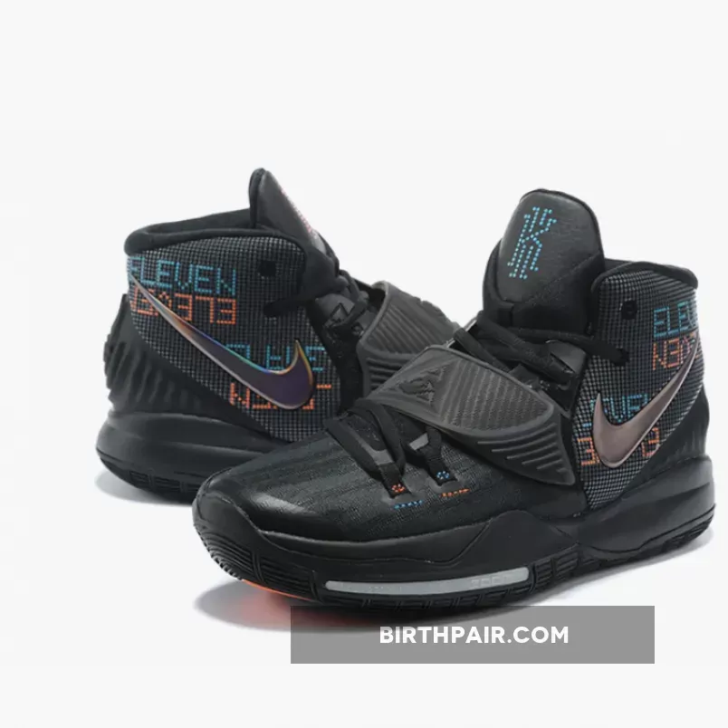 Since most of the shoe is cloaked in matte black, it’s the colored accents that purloin most of the attention here. The rear panels which have been materialized with dotted textures feature digital-esque text hits that spell out “Eleven” as a nod to the Brooklyn Nets point guard’s jersey number. In likeness to the forefoot stitching and tongue logos, each alternates between vibrant orange-red and blue tones. Additionally, the lateral/medial Swooshes mismatch in appearances as the former is given a metallic and iridescent finish, while latter deviates with a dotted silhouette.