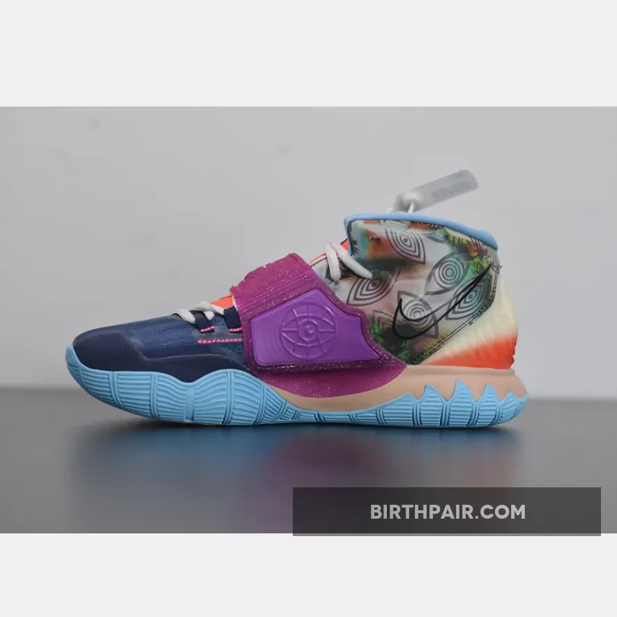 Dressed in a dark purple engineered mesh and suede upper, this latest styling of Irving’s new model is inspired by the idea of perspective as the carved jewel piece that houses the seeing eye is more visible in certain angles. A mix of accent colors in red, green, blue, and yellow decorate the tongue logo, exterior stitchings, and outsole, but actually serve to represent camera light filters.