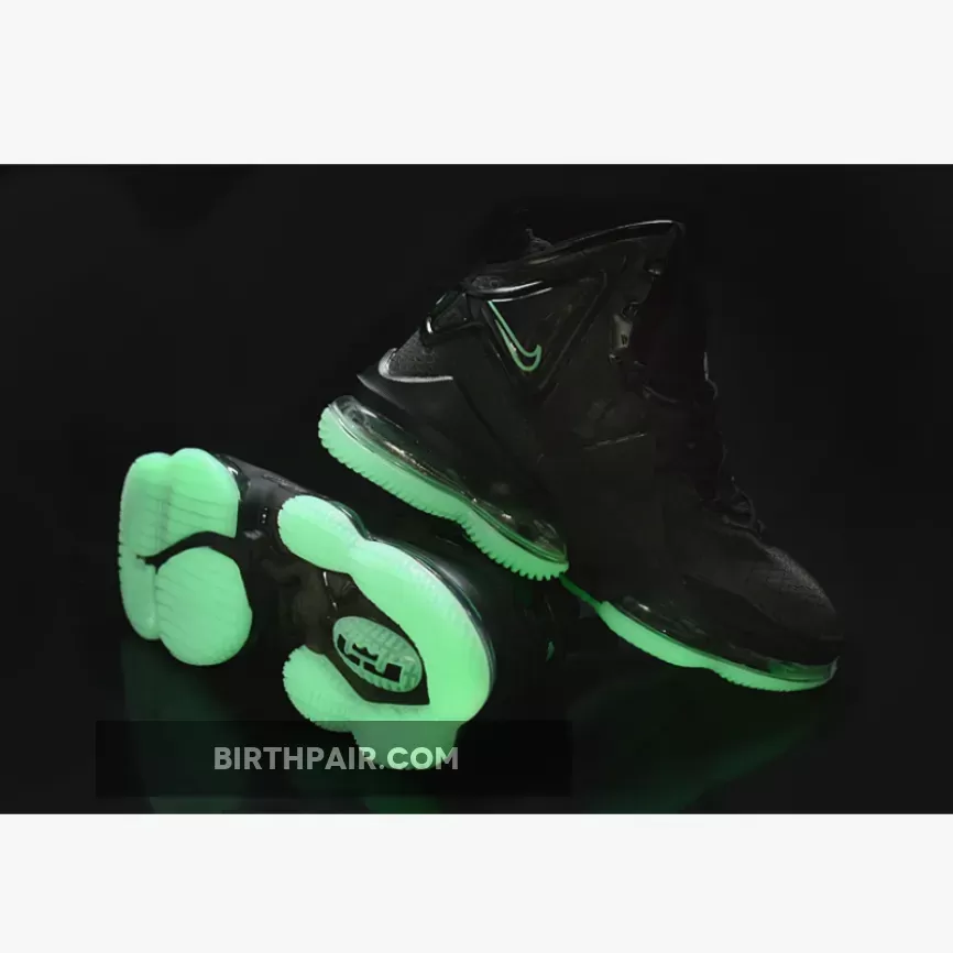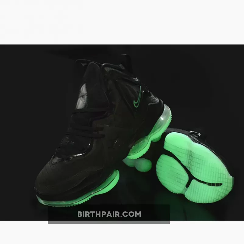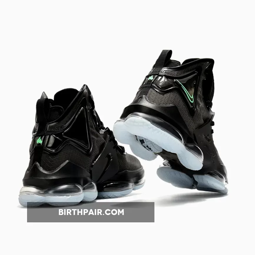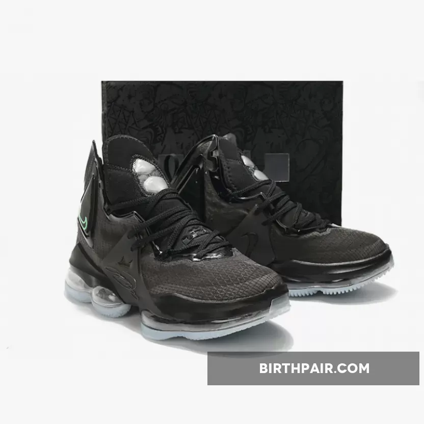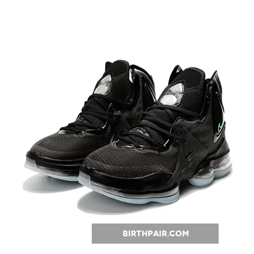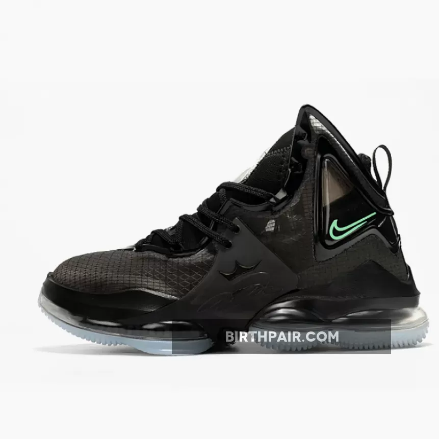 The Nike LeBron 19 is introduced in a new stealthy iteration with black and aqua as its primary tones overall. With black dominating its majority, the model boasts a synthetic textile upper with molded TPU overlays along the midfoot and heel. The hits of aqua are prominent on the insoles, Swooshes across the ankle, and branding on the heel. Finally, a forefoot Zoom Air unit with dual-chambered Max Air tooling rounds out the design nicely.