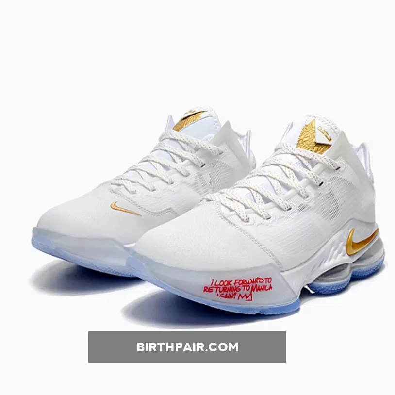 The silhouette is inspired by the mythical creature Ultramar whose meaning has differed over the centuries. This release serves as a tribute to basketball that is shared by many people around the globe. The pair is covered in a white hue with Metallic Gold on James’ signature logos and Nike Checks. Two different quotes appear on the toe boxes reading, “I Look Forward To Returning To Manila Again” and “The Passion For Basketball In The Phillippines Is Incredible.”