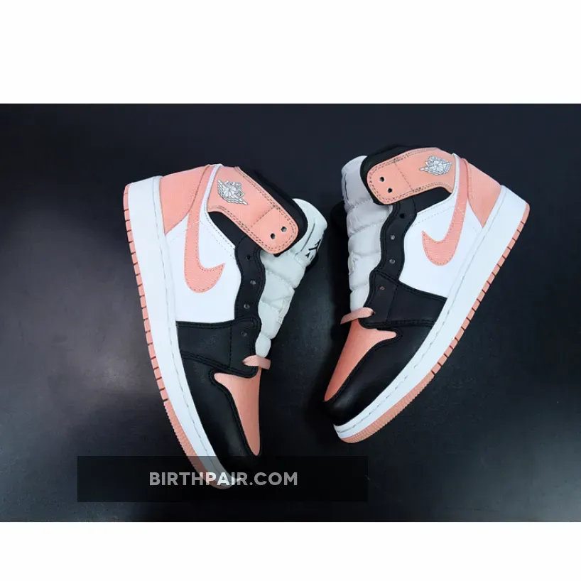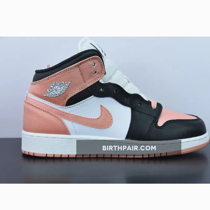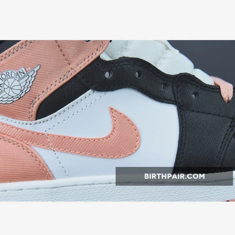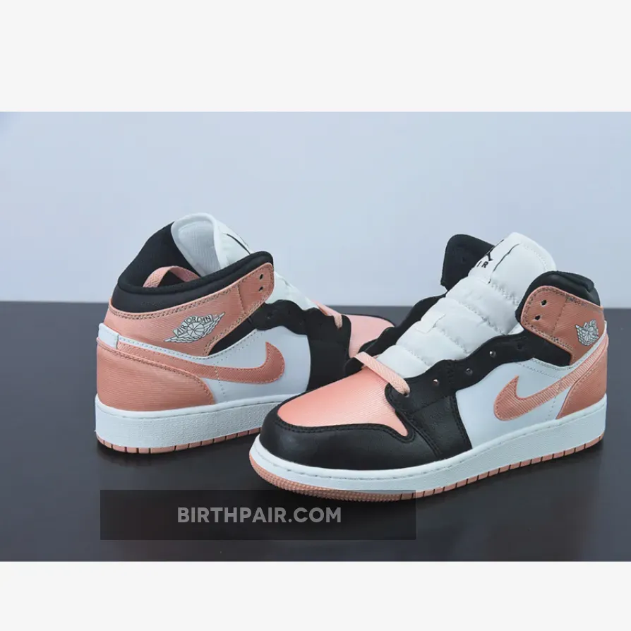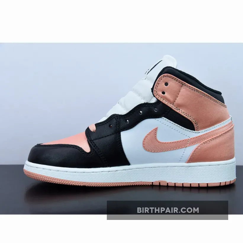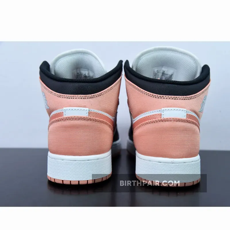 The newest Air Jordan 1 Mid comes in a delightful mix of colours and materials. Check out the Air Jordan 1 Mid GS Light Madder Root. This mid-cut AJ1 Mid has ribbed satin panels of the titular, Light Madder Root, with accompanying stark white and black smooth leathers to complement the rose-coloured hue. The shiny, textured Light Madder Root adorns the heel and ankle overlays, the Swooshes, and the toe box. The laces match up in peachy pink. Mid-panels and nylon tongues are in pure white.