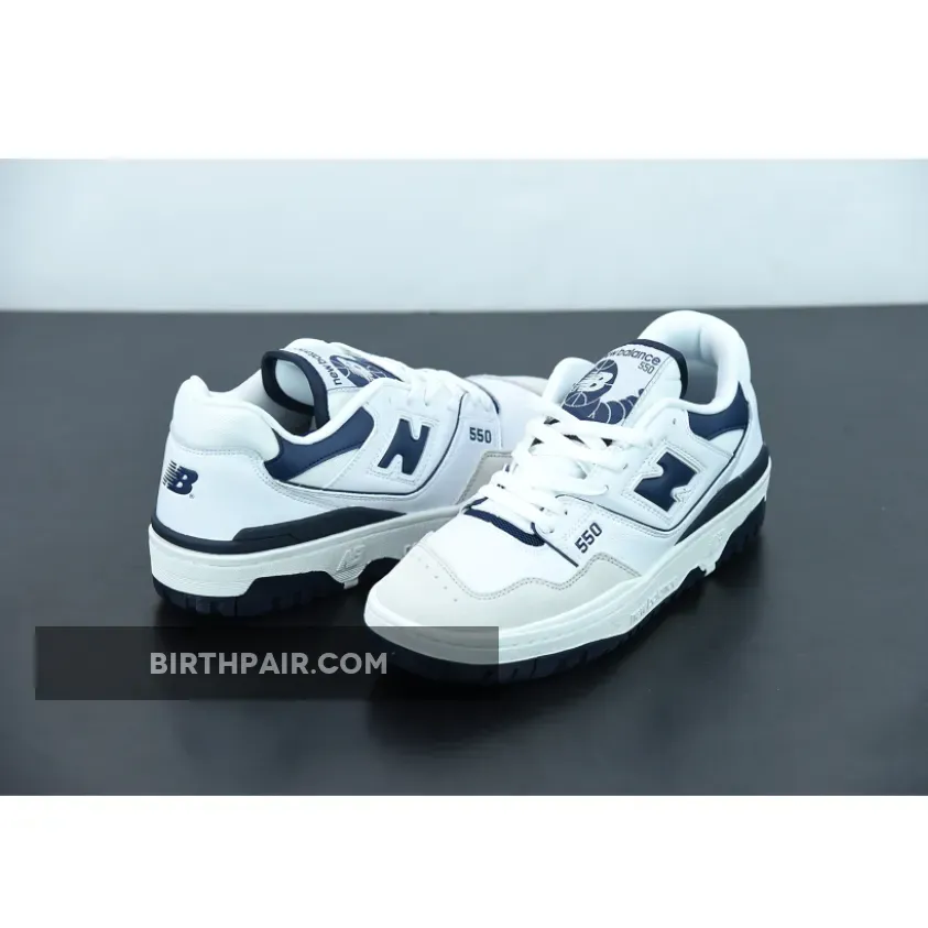 A contemporary take on a classic, the New Balance 550 White Navy strikes the perfect balance between retro and modern. This basketball-turned-lifestyle silhouette stays true to its classic clean and simple build that New Balance 550 pairs have been sporting since 1989. In keeping with tradition, the upper’s base showcases a mix of smooth and perforated off-white leathers. At the same time, the stylish mix of monochromatic hues makes the shoe very much in vogue. Light grey animates the toe cap and the mesh collar, while pops of dark navy appear at the tongue label, 550 forefoot branding, puffy “N” logo, and at the heel detailing.