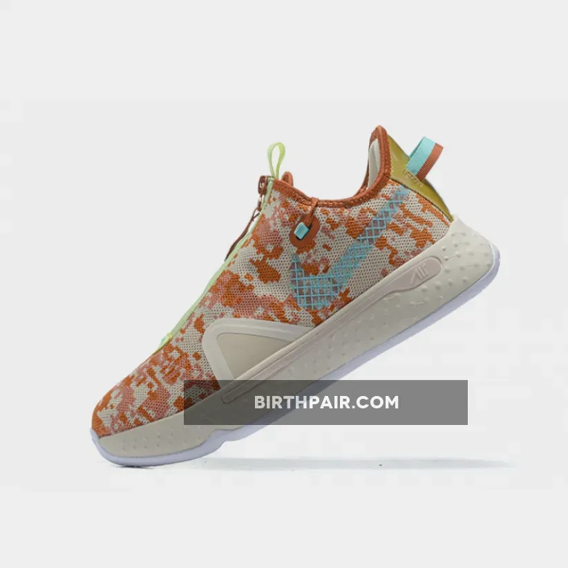 This offering of the Nike PG 4 features a Black base covered fully in digital camouflage graphics detailed with Orange and Purple accents to give off an ACG vibe.