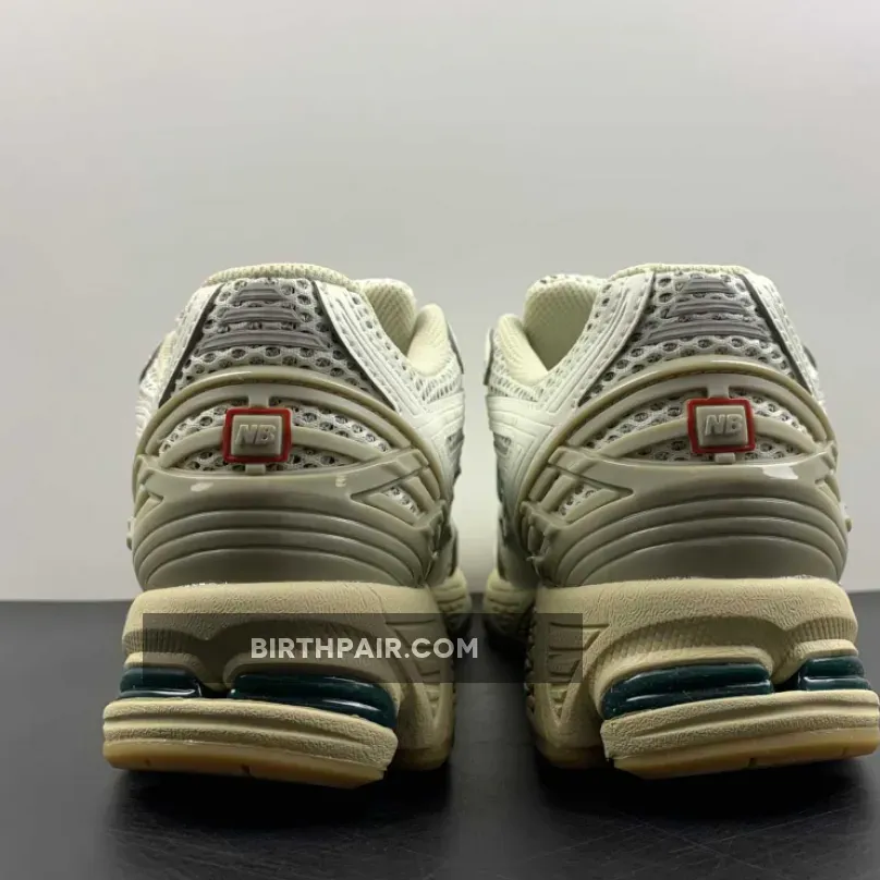 The base of this New Balance 1906R is made with thick white mesh and is secured with dynamic leather overlays. The signature New Balance “N” comes in green and features an exposed shoelace detail. The ABZORB midsole has an aged tint with a gum outsole. The tonal neutrals of this colorway make this a perfect sneaker for Fall/Winter and will transition well into Spring.