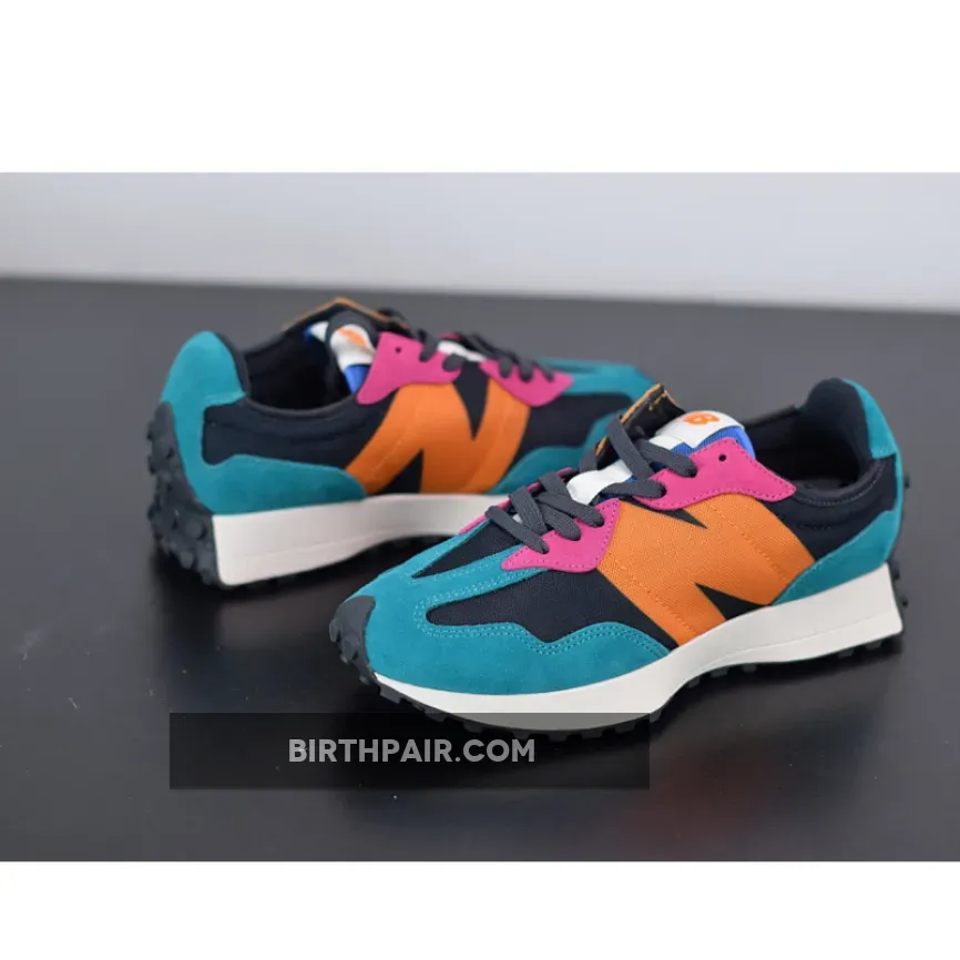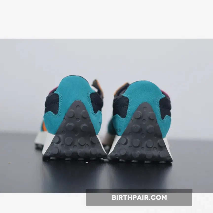 “I’m totally stoked with my new NB 327 Black Multi! ? The charcoal grey canvas and bright orange accents are a great combo. The blue tongues and teal/punch suede overlays add a nice pop of color. The white midsole and black trail-inspired outsole provide excellent cushioning and traction. Overall, I’m really happy with the design and performance!”
