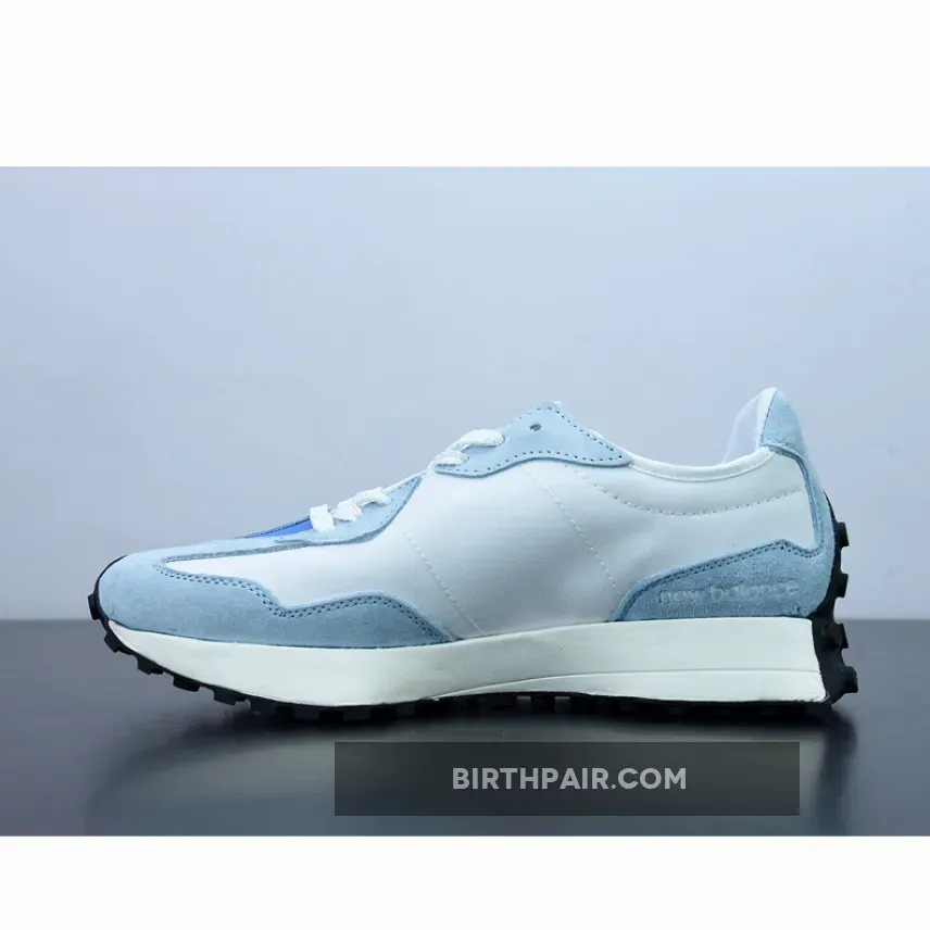 Just in time for sunnier days, the New Balance 327 has a heavenly new colourway that’s inspired by the wide blue yonder. Meet the New Balance 327 Light Blue White.The first thing to catch your eye is the combination of different shades of blue on the upper. The lateral side has a light indigo-like shade while the medial side is more of a powder blue hue leaning towards white. The lopsided extra-large “N” logo on the lateral profile is a refreshing white. The suede overlays are a tone darker than the medial base.