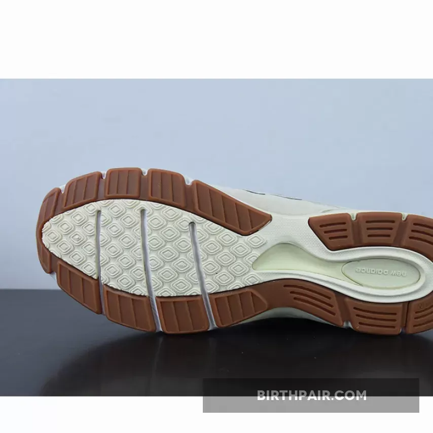 The kicks feature a lightweight, breathable tan upper constructed for a top tier level of comfort. On the side, a reflective detail appears which was created to offer a hint of color while worn at night on the roads. We also see dual-density collar foam which was added to provide cushioning and support. Lastly, the brand’s “N” symbol appears in a metallic gold hue outlined with white trim.