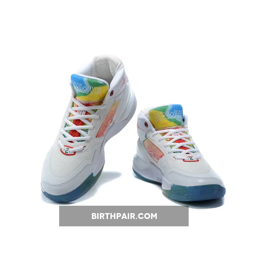 But though the aforementioned has effectively become his own, it’s technically not his first signature silhouette; rather, that title is now owned by the eponymous KAWHI that made history as it stepped on court for the first time tonight. Replete with a minutia of detail, the pair starts its base relatively simple and neutral, as white mesh and synthetics cover from the midsole upward. Side panels, however, infuse a well-needed mix of color as orange, blues, and reds thread an abstract mosaic in perpetuity, warping upwards to a tongue whose tones prefer a more watercolor appearance. Along the ankle, an aggressively high frequency lays out in bright red across a backdrop of cool tone grids, sitting quite close by to logo hits associated with not only the athlete but also the Boston institution