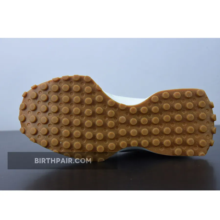 The New Balance 327 has a brand new iteration with striking colour blocking and meets the brand’s sustainability standard. Check out the New Balance 327 Sea Salt Rust Oxide. The nylon base of the upper is in the titular beige-looking Sea Salt shade. The suede overlays on the toe cap, the split eyerow on the forefoot and the eyestay panel are all in a darker tan colour. The heel overlay is the most striking detail of this shoe in a vivid reddish-brown Rust Oxide. An oversized “N” logo in white can be found on the lateral side of the shoe while New Balance text branding in white stands out on the Rust Oxide-covered medial heel counter.