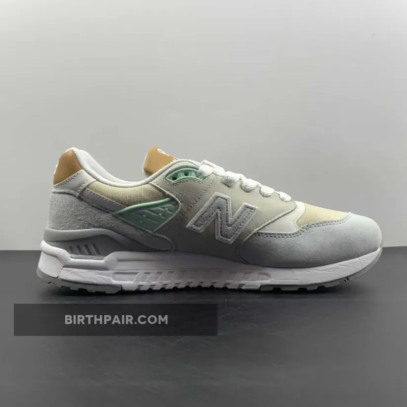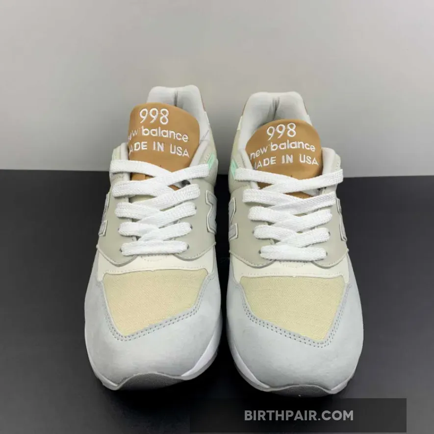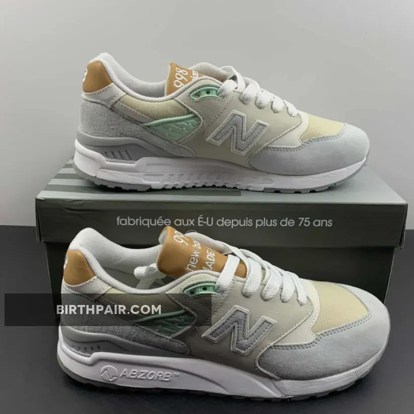 This is a “US Made” retro running shoe from New Balance that is combines a muted color palette with premium materials.
