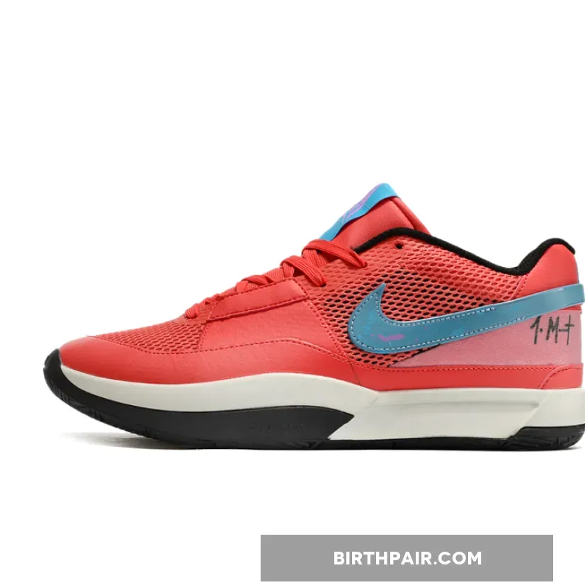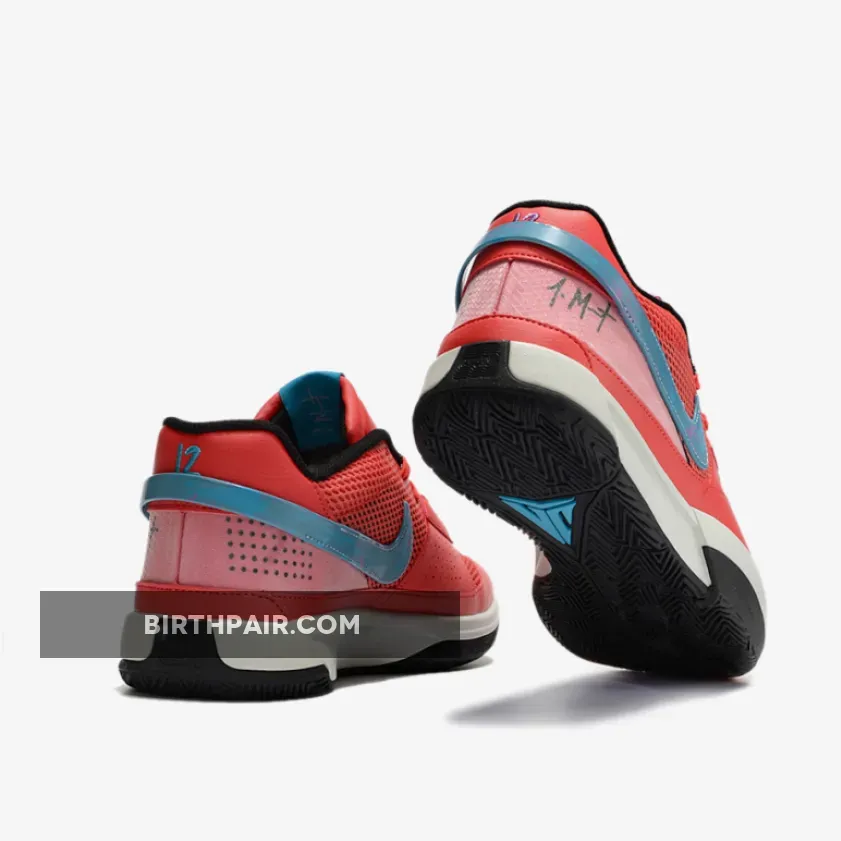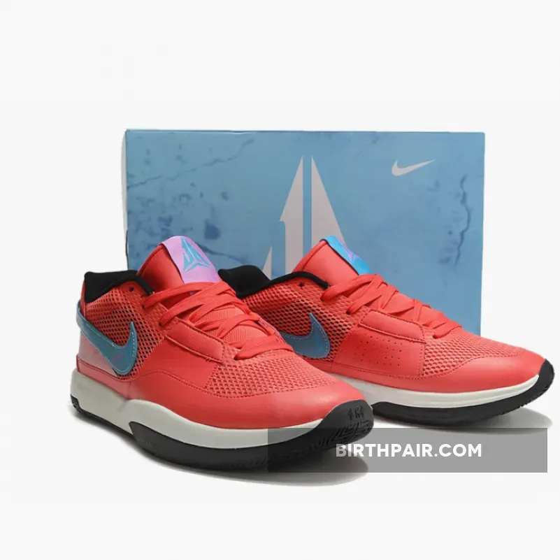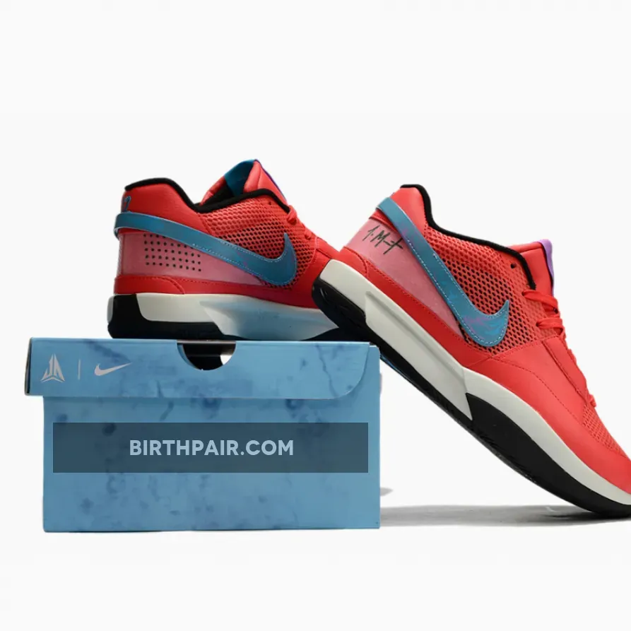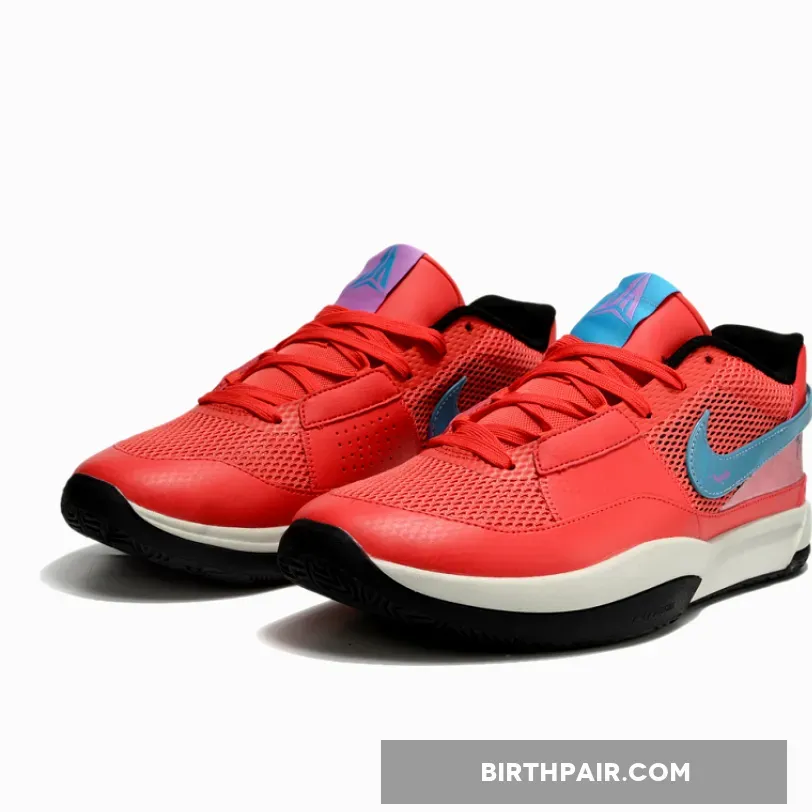 Continuing to harken to the ear-marked page in the titular section of the color wheel, the Nike Ja 1 now dresses in an overtly vibrant scheme with “Infrared” hues enveloping the mesh body, leather quarter panel, tongue construction and laces. Elsewhere, bright sky blue and lilac shades pair off to anchor the tongue tabs and heel’s embroidered #12’s in a mismatched association while both the left and right foot’s full-length Swooshes come dipped in the presiding blue finish.