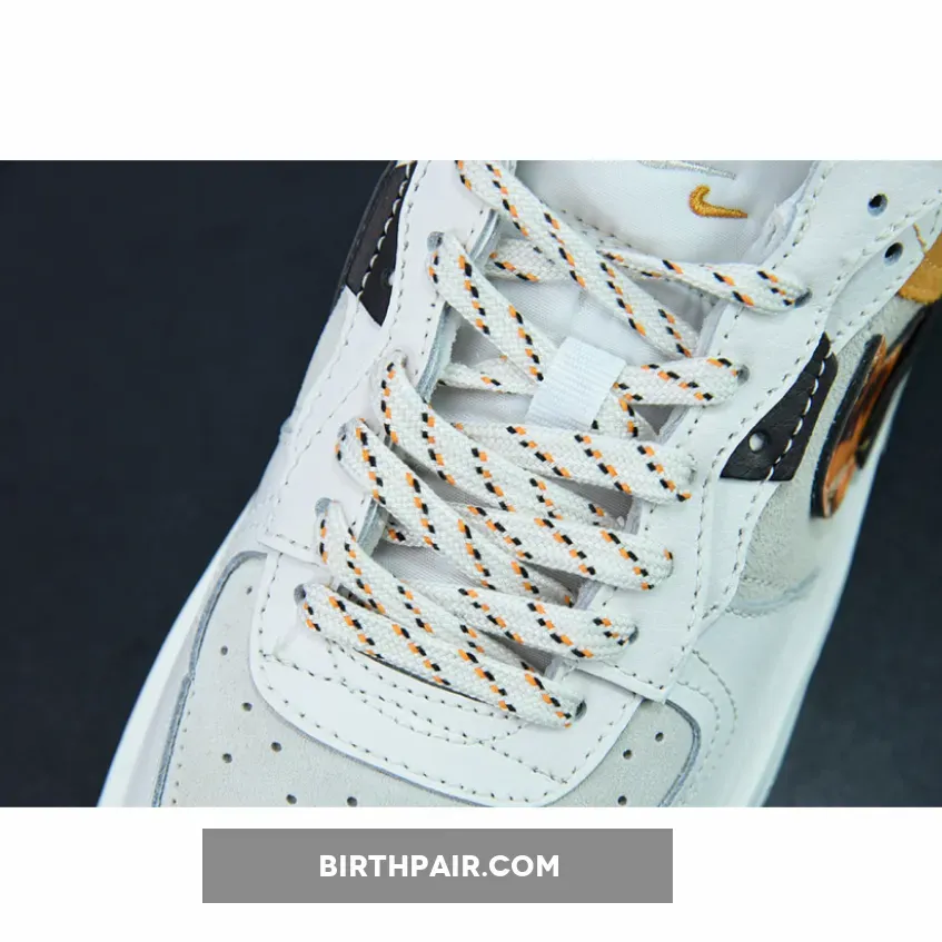 The Nike Air Force 1 Fontanka dons a nice mix of grey and orange with a touch of tortoiseshell. Check out the sherbet-looking Nike Air Force 1 Fontanka White Orange with a twist. A dove grey suede dresses up the base while smooth white leather takes over on the toe cap and the eyestay panel. A melon-coloured suede heel panel adds a touch of contrast to the upper. What gives this shoe a unique personality is the tortoiseshell Swooshes on the quarters with brown tumbled leather accents sewn over the bottom halves. The brandless heel tab follows the Swoosh treatment. The white laces feature brown and orange patterns.