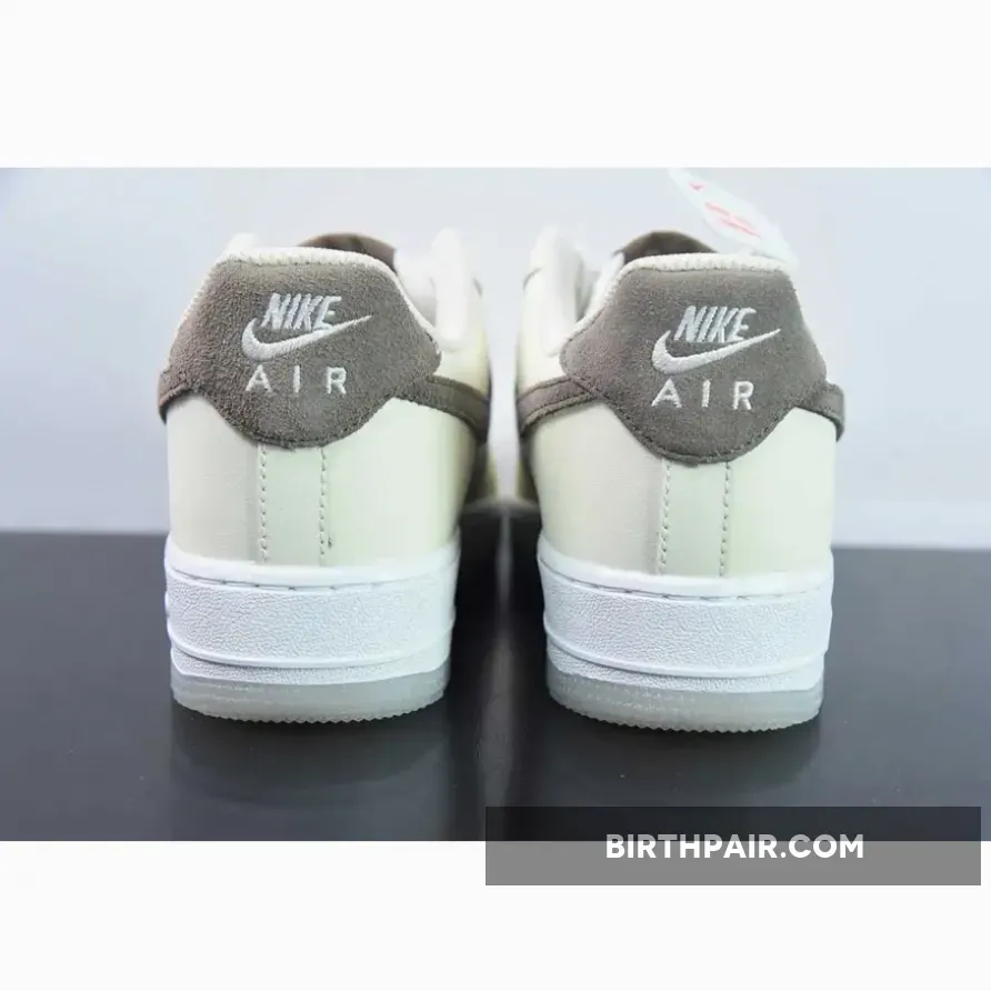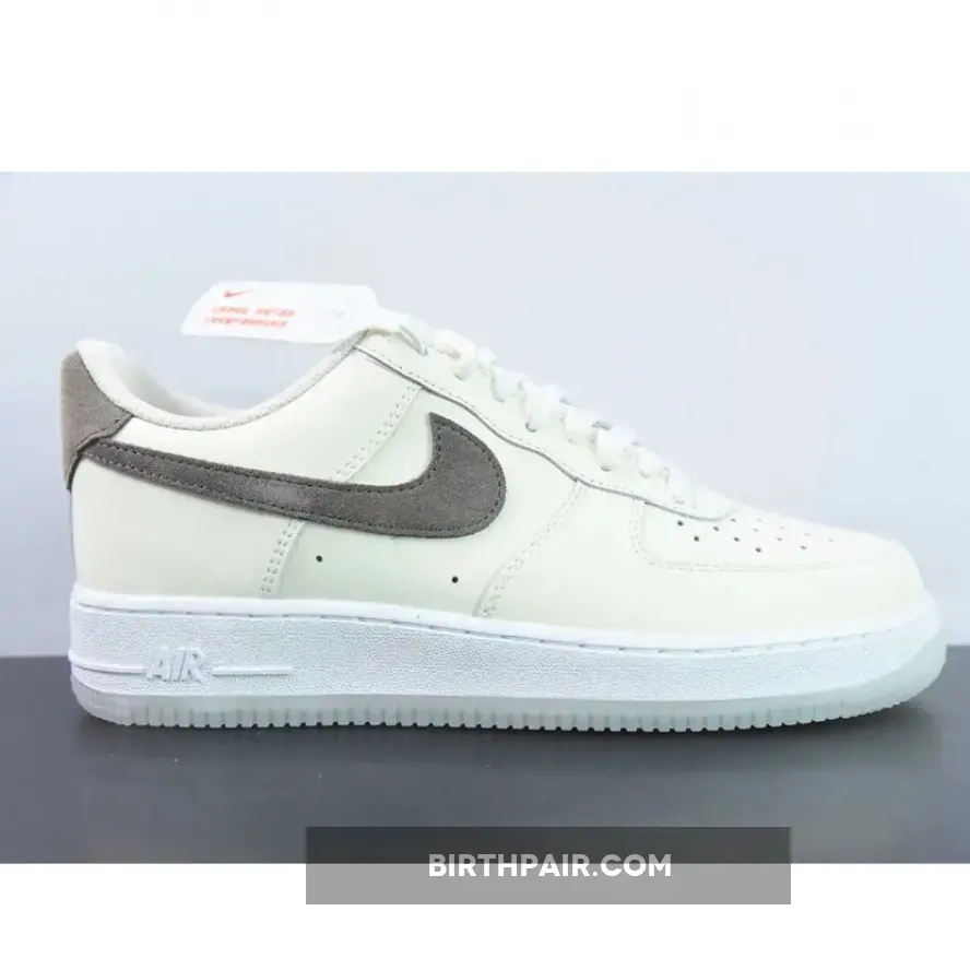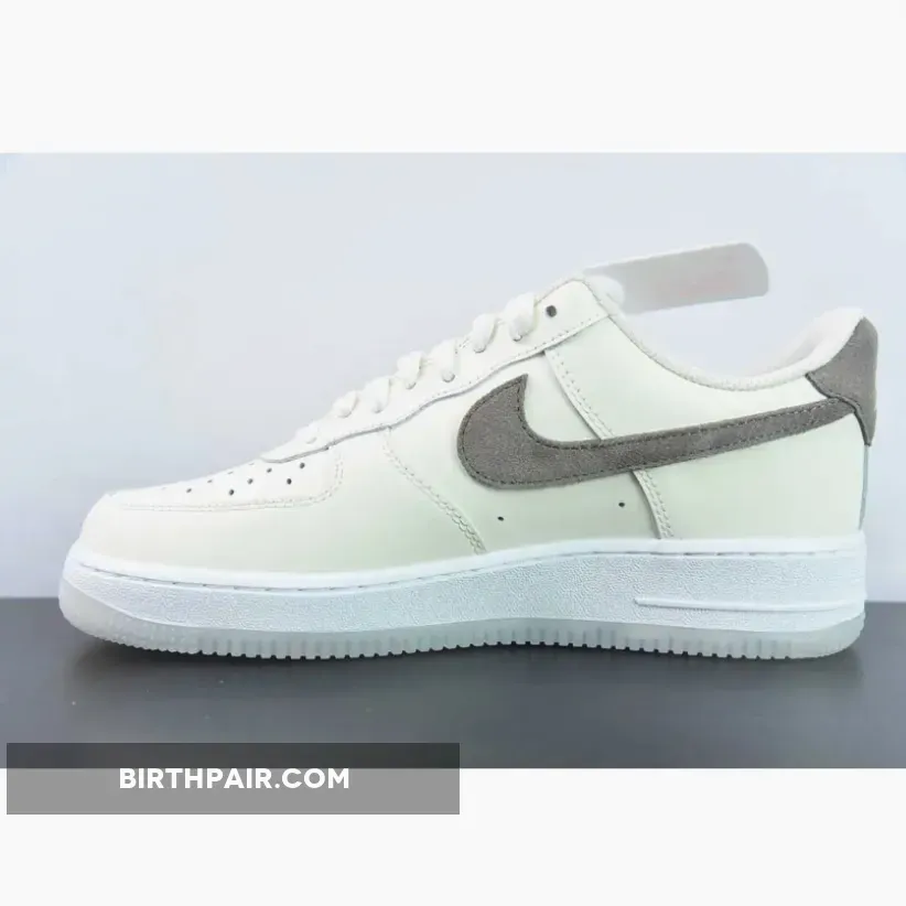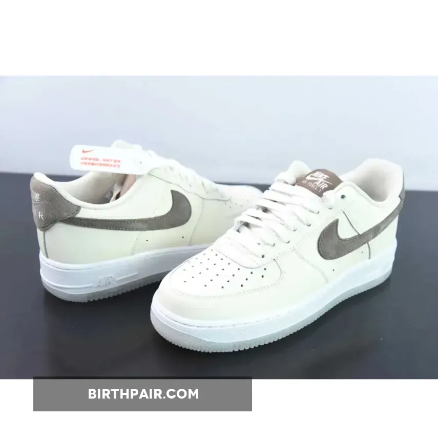 Below, Khaki suede Swooshes and heel tabs add a touch of luxury, extending to the tongue labels and insoles. The design wraps up with a White AF1 midsole and semi-translucent outsole.