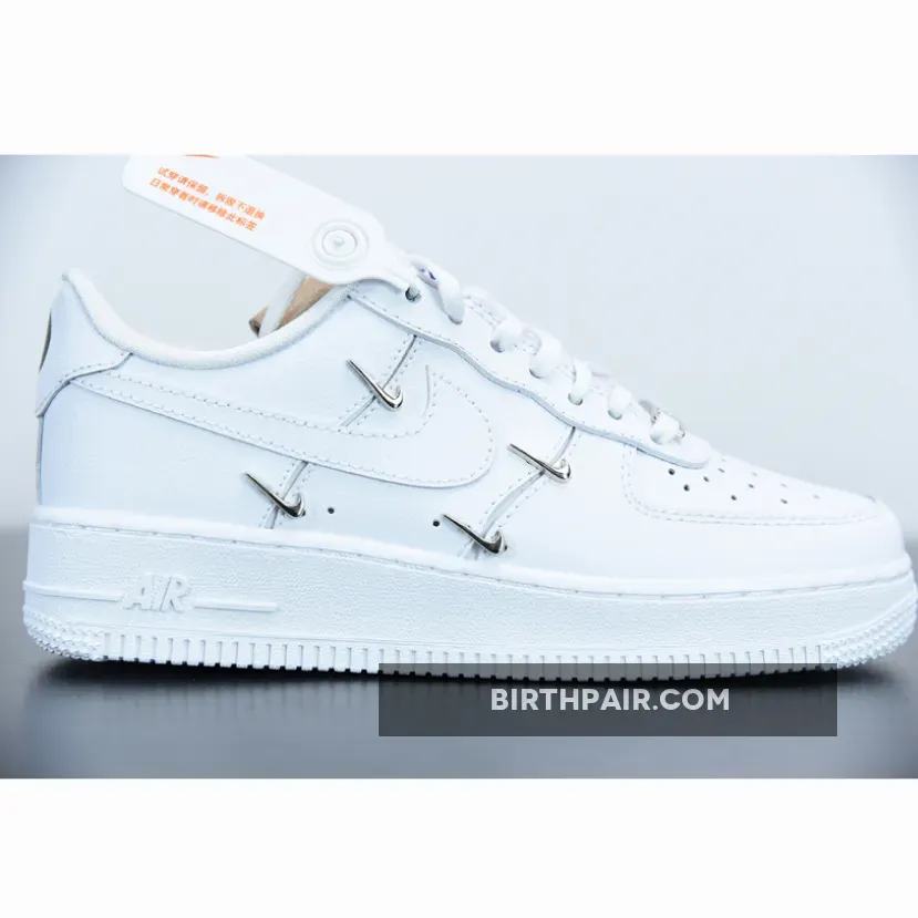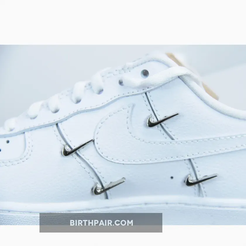 Delivered not solely through quality or price tag, these specific pairs seem to bear many an embellishment, the most significant example of which adding colorful jewels down its tongue. Far more subtle by comparison, the next up achieves a similar expensive aesthetic with a small handful of mini metallic swooshes. These dress around their larger leather complement, polished on both the lateral and medial; elsewhere, triple white palettes seem to contrast with ordinary presentation, though the blue branded tongue and floral-patterned insole add extremely subtle yet welcome point of distinction.