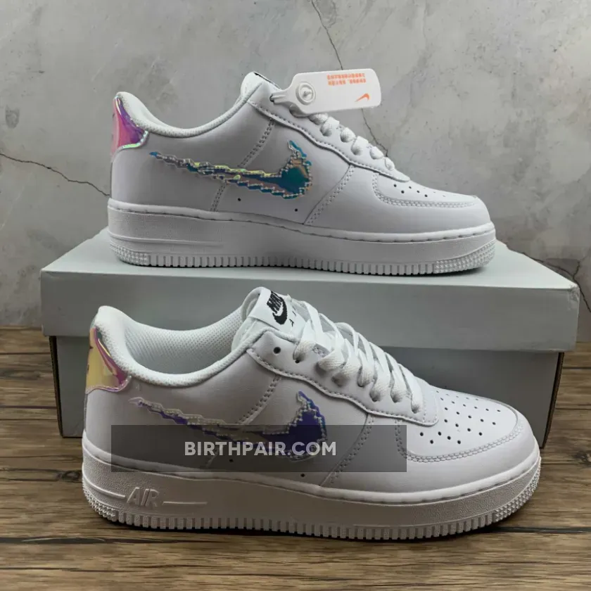 Is there anything better than a fresh new AF1 for summer time? This brand-new Air Force 1 07 LV8 GS Pixelated Swoosh White offers a subtle but cute upgrade from the AF1 we know and love – and they’re a must-cop.You’ll find those typical AF1 details like a fresh, premium leather, crisp white laces and a perforated toe box. Taking inspo from video games, the iconic Nike Swoosh logo comes pixelated in a holographic hue, giving the shoe a fresh new expression. Holographic vibes continue on the branded tongue tab, while the tongue sports and TPU label.