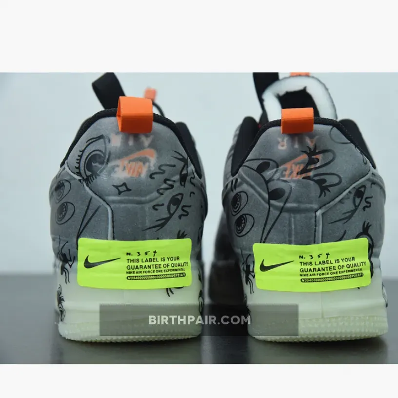 Nike is suiting up this transformed AF1 once again for the upcoming Halloween holiday, covering the exterior of the silhouette with the same spooky pattern of ghastly eyes – the same seen in the Dunk Low “Halloween”. This transparent layer covers a dark grey foam-like underbody, while orange accents on the pull-tabs, lace eyelets, and lace toggle provide that jack-o-lantern effect. What makes this Air Force 1 Experimental stand out even more, is that the aforementioned grey foam material is entirely glow-in-the-dark. Not only will the shoes help you stand out in broad daylight, but it’ll also help you break some necks in the dark when it completely lights up. The only portions of the shoe that don’t illuminate are the tongue, interior lining, and the pull-tabs.