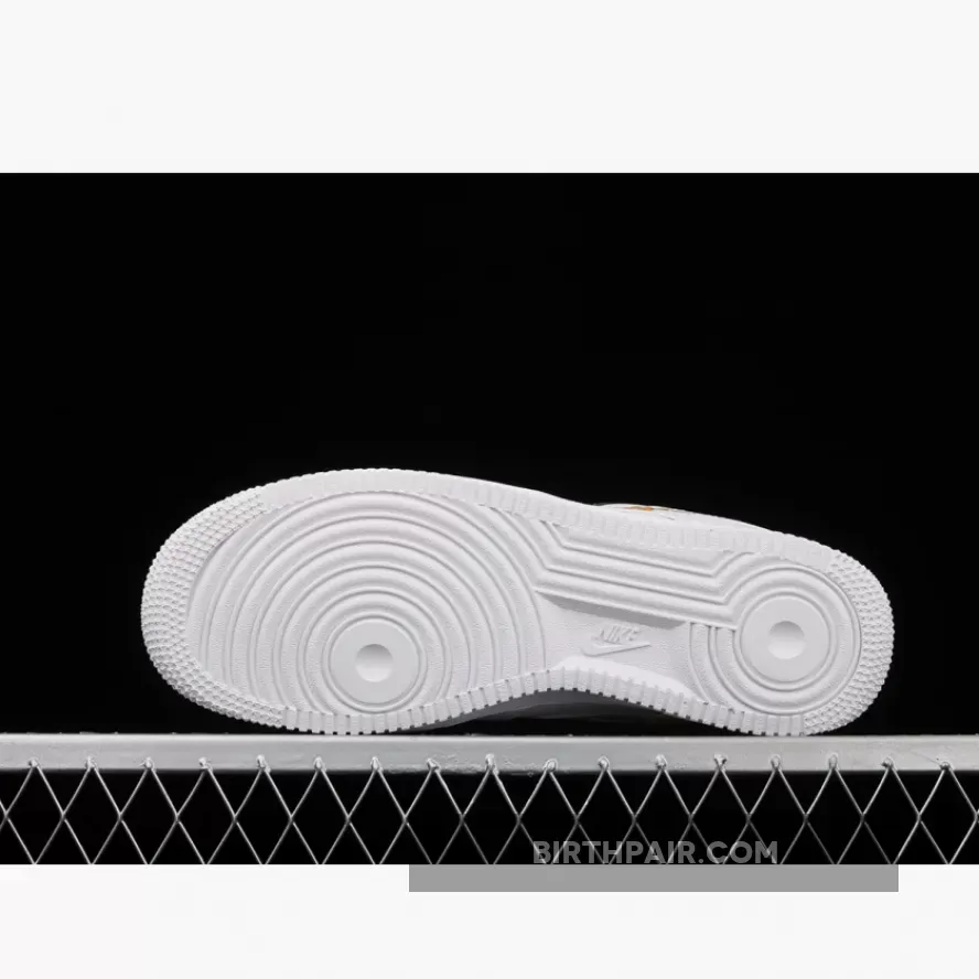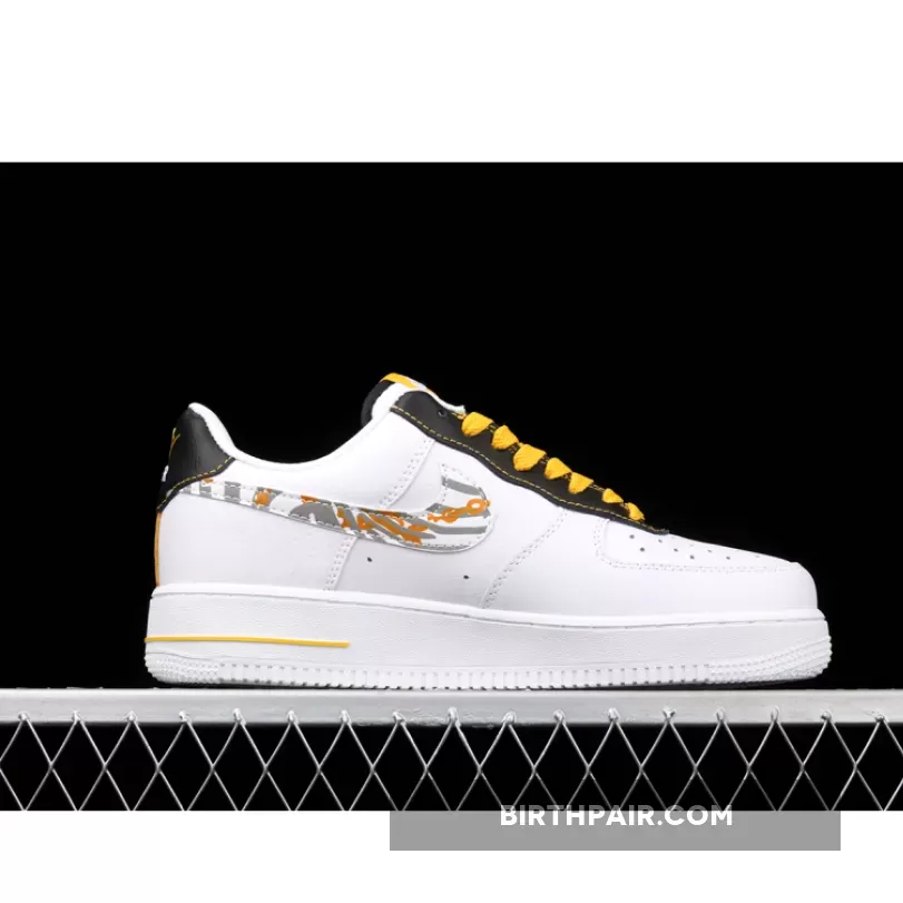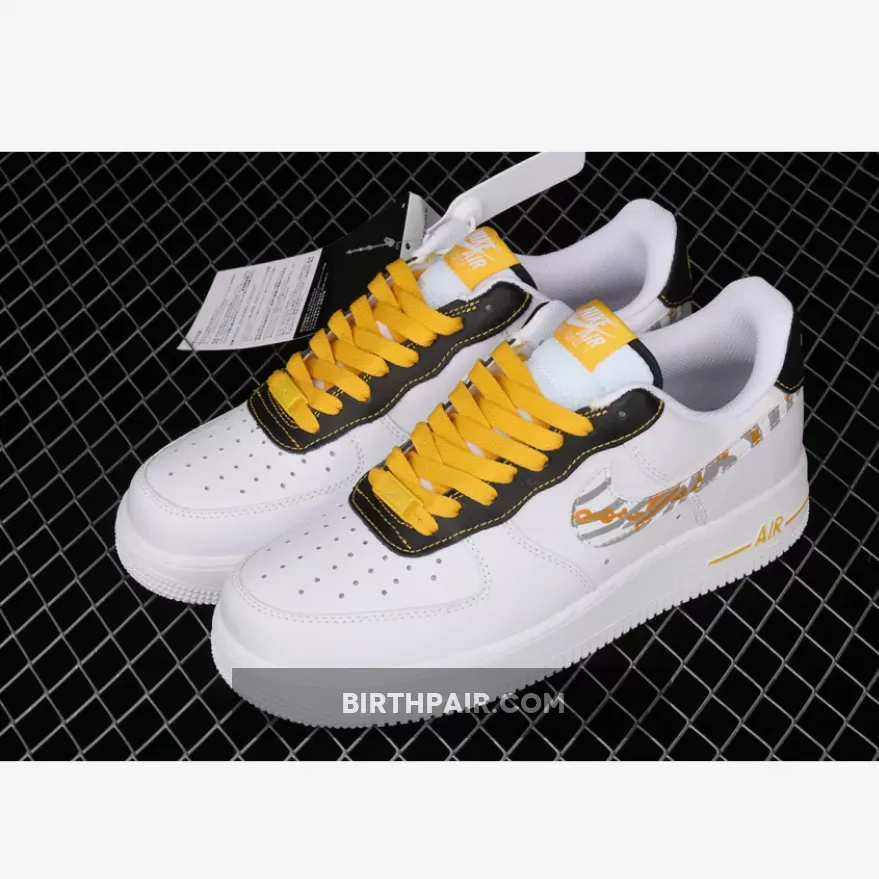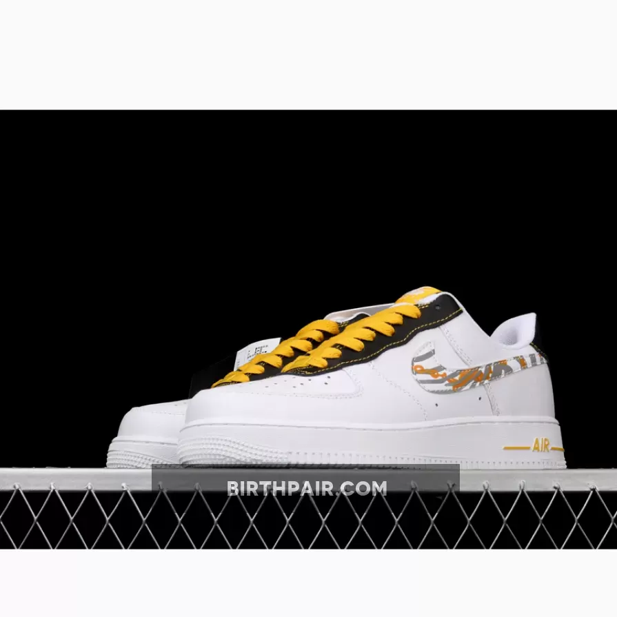 Starting from its most simplistic feature, the pair’s upper arrives in tumbled white leather, while liners, tongues, and sole units remain unchanged from your stock-standard release — save the latter’s mustard yellow decal. Fine, textured nubuck overlays in black are tacked on at the eyelet and heel overlays with contrast yellow stitching, the former housing butterscotch-colored laces, and dubraes. Tongue tags and rear branding also jump on the muted yellow hue, which now only leaves one final design element for discussion: the 3M reflective Zebra Stripe and chain link-printed Swoosh sets. How that — dare I say it — links in together is anyone’s guess, but it looks kinda cool.