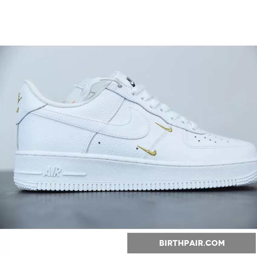 Nothing can ever beat the elegance and regal attitude of the Air Force 1 kicks. It’s literally a universal truth and this particular Swooshes Pack release is even confirming it more. The white leather walls are of premium level and give your feet a safe and snug feeling, regardless of the weather. The tonal white leather overlays have a rougher texture than the underlays and the smooth Swoosh on the sidewall. Gold embroideries on tiny Swooshes on the sides and Nike AIR branding on the heel add a bold vibe to this street-master.