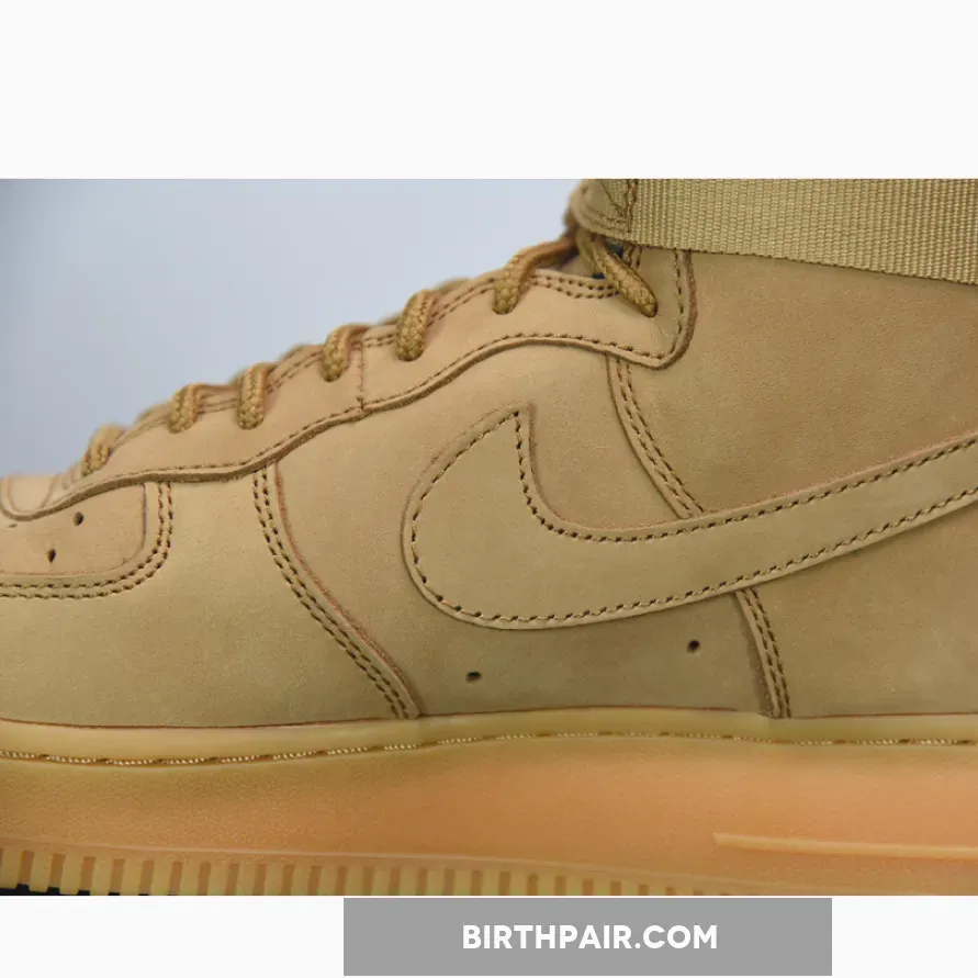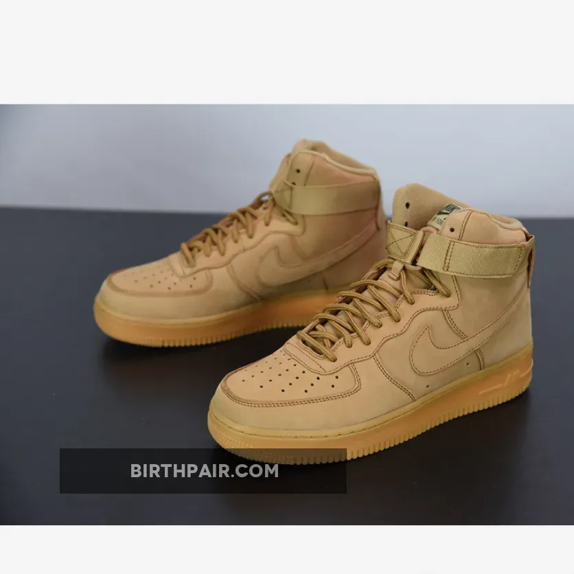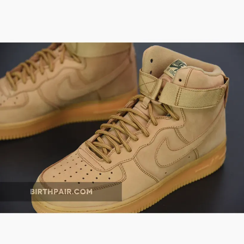 The Flax, Outdoor Green, and Gum Light Brown-colored Nike Air Force 1 High Flax 2017 is a unique variation of Nike’s Air Force 1 High sneaker.