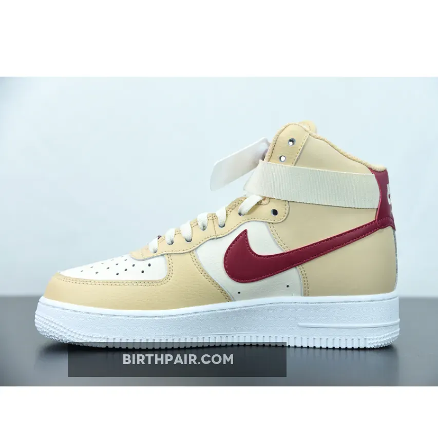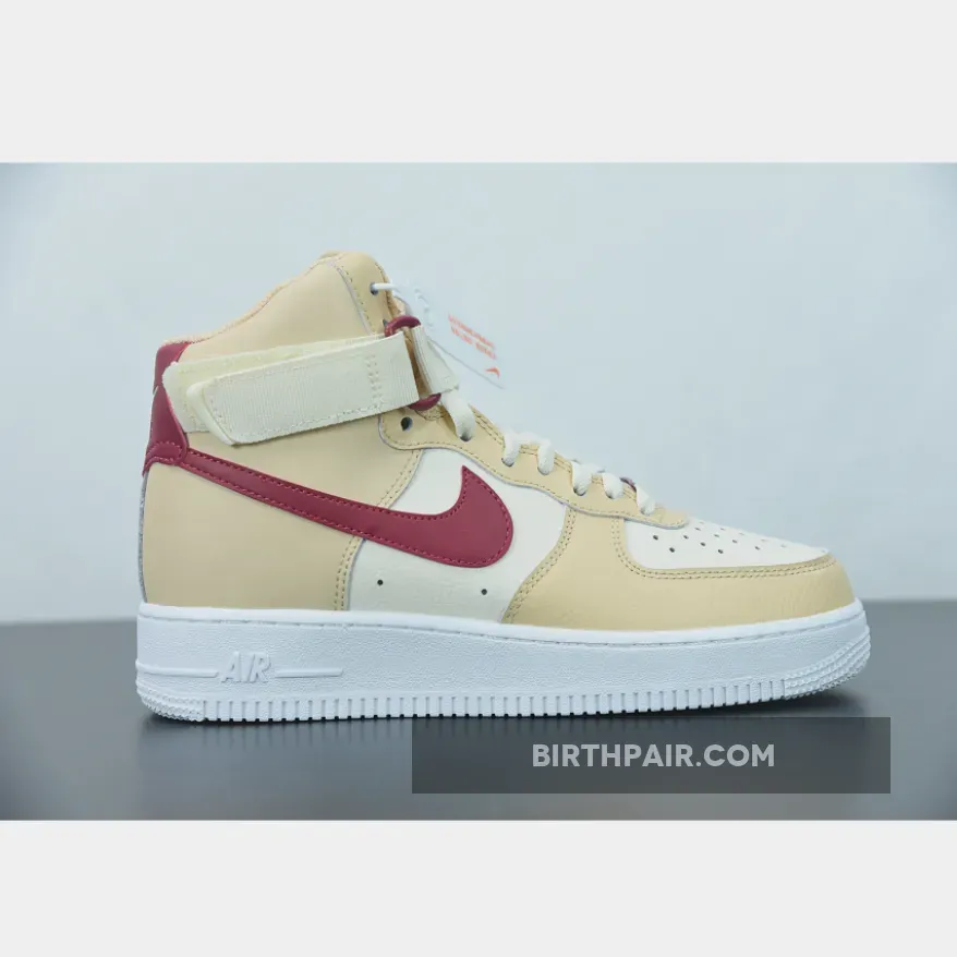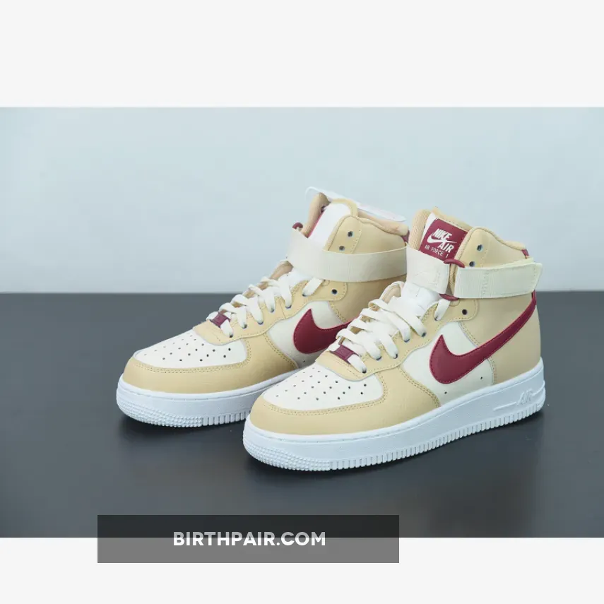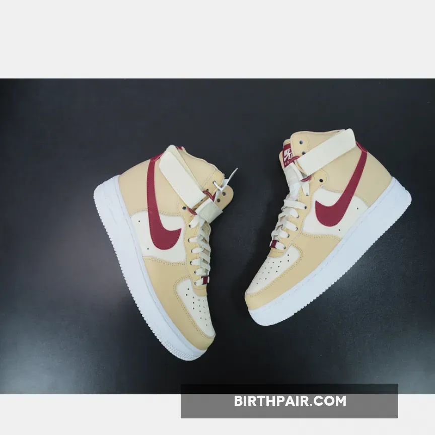 The nylon strap and hardware are details that allude to an industrial aesthetic, making the AF1 High a fitting model to apply the Mars Yard colors to. The women’s-exclusive applies varying shades of tan throughout the uppers, which are contrasted by a red swoosh and heel tab. The overlay on the hindfoot and the side Swoosh see a smooth leather makeup but leathers used elsewhere take on a pebbled texture. This makes for a refreshing new take on the popular colorway that still retains the original’s appeal.