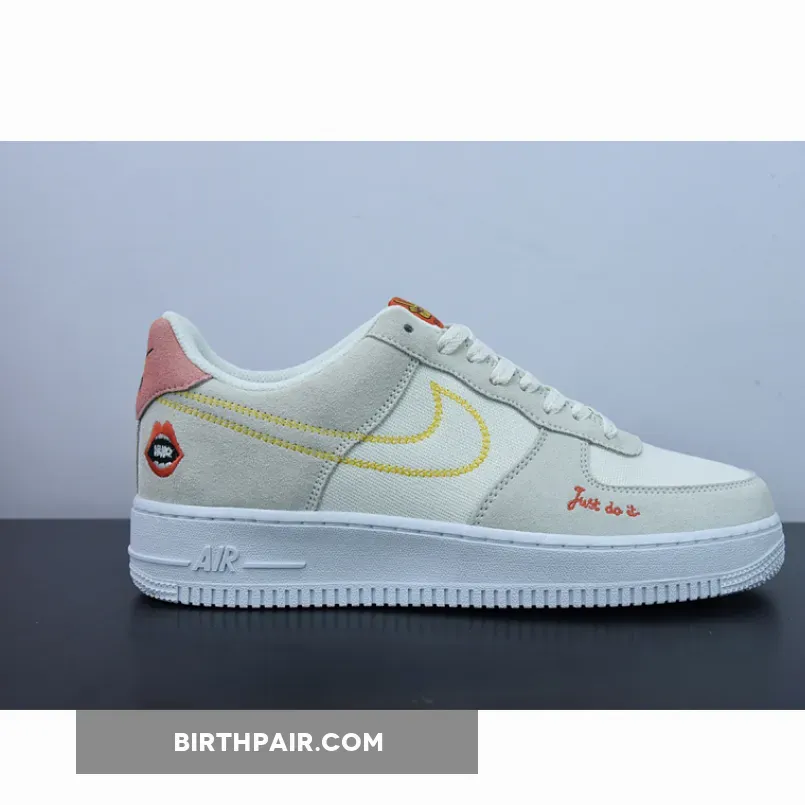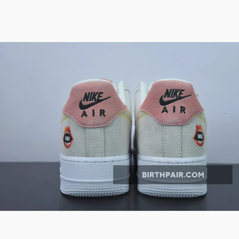 Solid color scheme with playful graphics makes the Air Force 1 Low ‘Rock And Roll’ a unique statement sneaker. The mix of burlap and suede materials offers both comfort and style, while the peace sign and mouth motifs add a touch of personality. Overall, a stylish and eye-catching pair for casual wear.