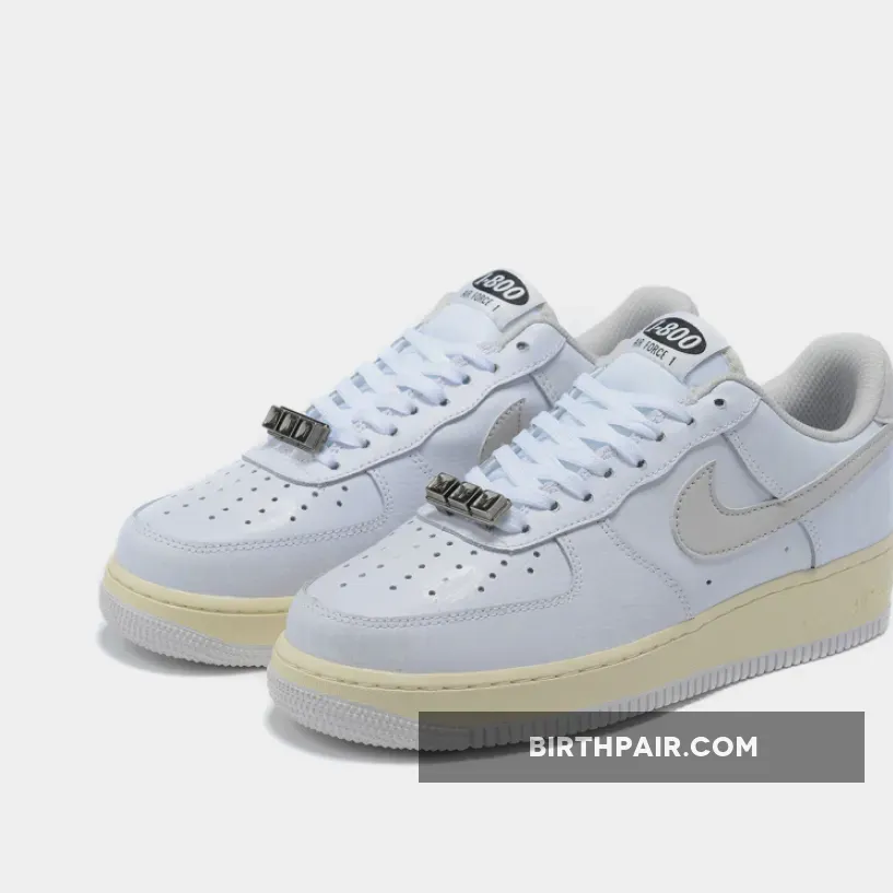 The Nike Air Force 1 Low Toll Free White is Nike’s latest addition to their history book of AF1s. What was once Bruce Kilgore’s invention for the basketball court back in 1982 now serves an essential shoe in a fashion-focused society we live in. This sneaker is, without doubt, a pair that will have people’s head turning anywhere you go.The silhouette, set to arrive in platinum white and vast grey, takes inspiration from toll-free telephone numbers for its thematic details. A closer look at the shoe shows a premium white leather upper while its lateral and medial sides showcase subtle wording graphics throughout. Vintage landline phone dials text that reads “1-800” then feature across core components of the shoe such as the tongue tabs and heel panels replacing the labels’ signature branding. Significantly marking this pair are the button lace dubraes on the forefront, the graphic insoles, and a grey swoosh logo that shoots across its quarter panels.