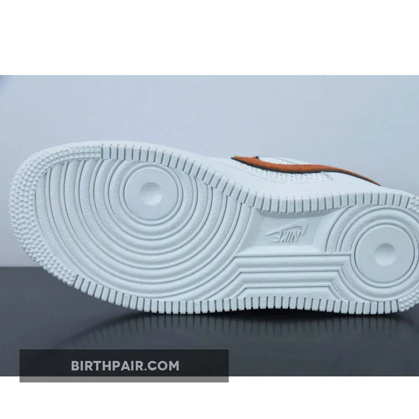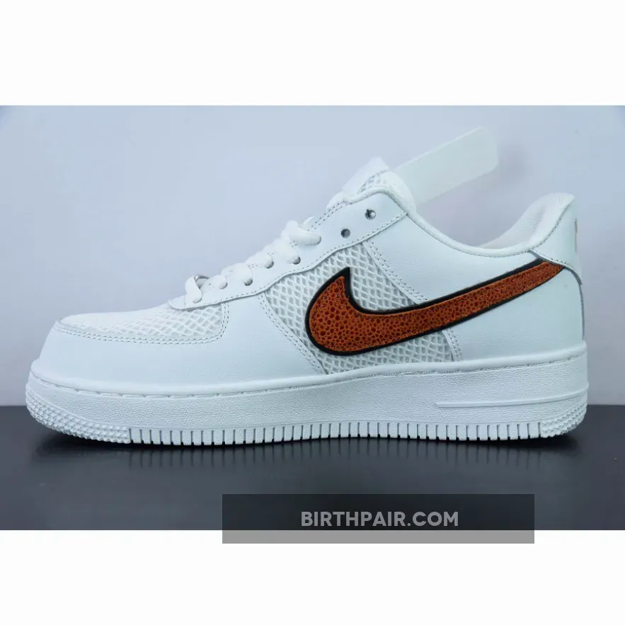 It’s rare to see a Nike Air Force 1 that departs from the usual all-leather upper. A newly released iteration that’s part of the Basketball Swoosh collection shakes things up. Get ready for the Nike Air Force 1 Low Basketball Swoosh. This AF1 has a net-like mesh base, a nod to its collection’s title. White leather overlays complement the base on the toe cap, eye stay panel and foxing. The stars of this shoe are the signature profile Swooshes on both the medial and lateral mid-panels with orange basketball-textured leather. The metallic silver lace deubrés that adorn the shoe swap out the AF1 branding with Nike text branding.