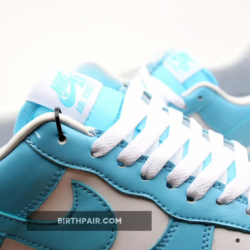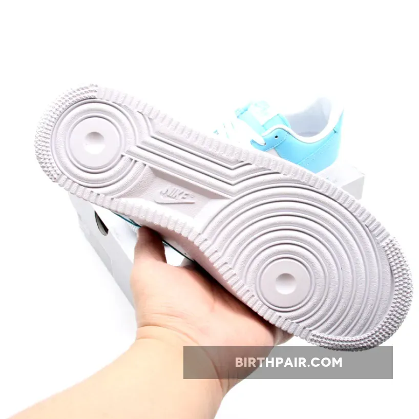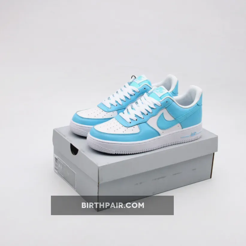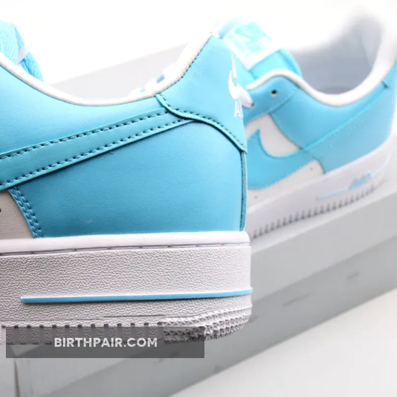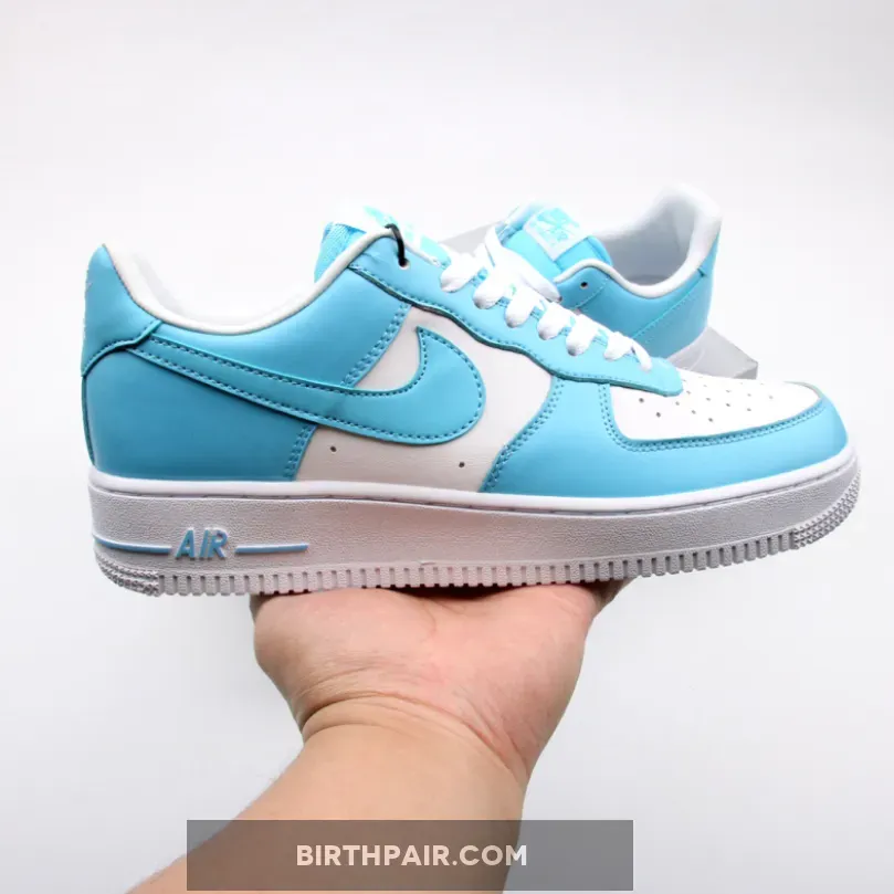 This Nike Air Force 1 Low comes dressed in a Blue Gale and White color scheme. It features a full leather upper with perforated detailing on the toes and sides.