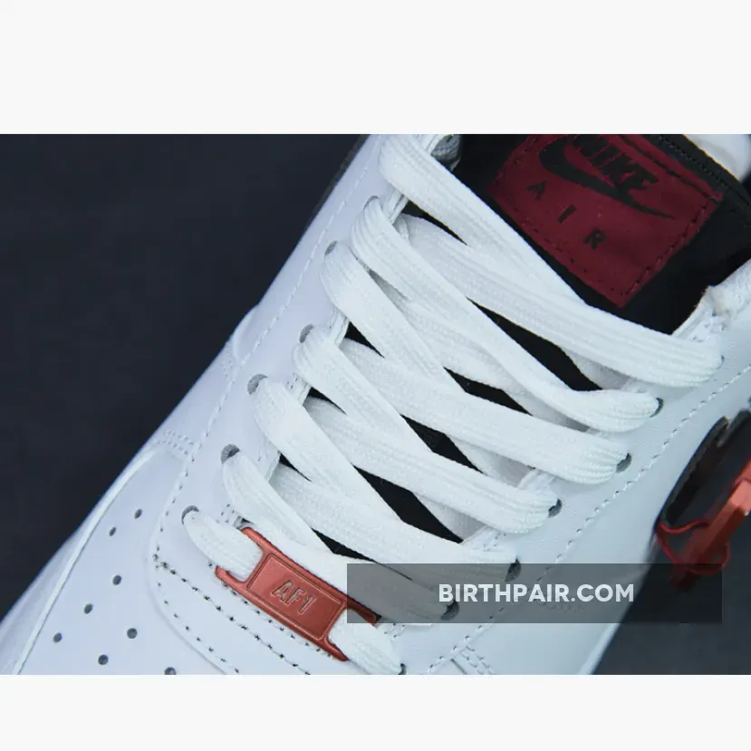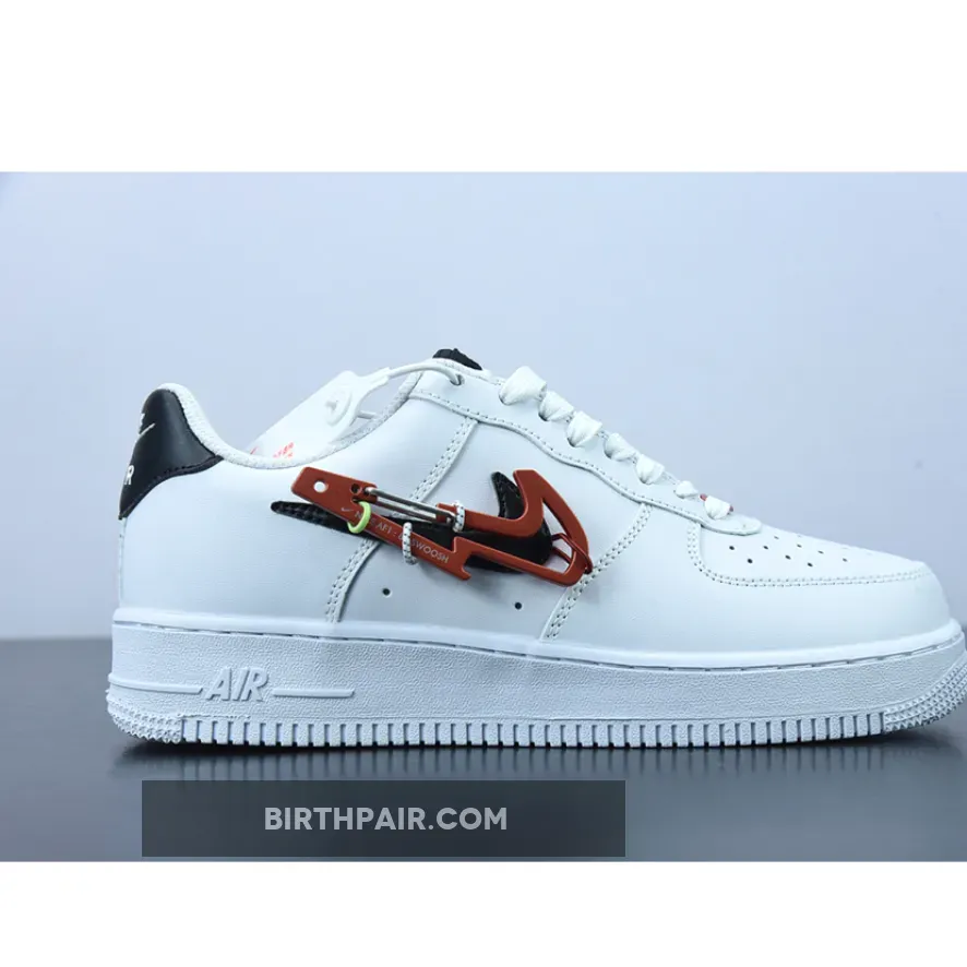 Take your style to the next level with the Nike Air Force 1 Low Carabiner Swoosh White. This revamped AF1 gets a utilitarian aesthetic makeover with the addition of a carabiner detail on top of the traditional Swooshes. It also features a black modern zip-pocket tongue that contrasts the Air Force 1’s classic smooth colourless leather upper. Furthering the dynamic design of this pair are the bright orange lace dubraes.
