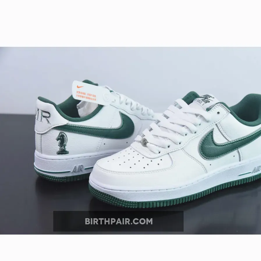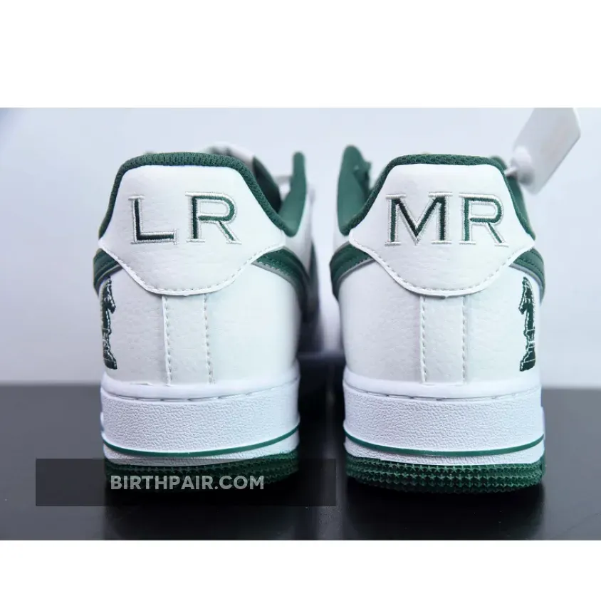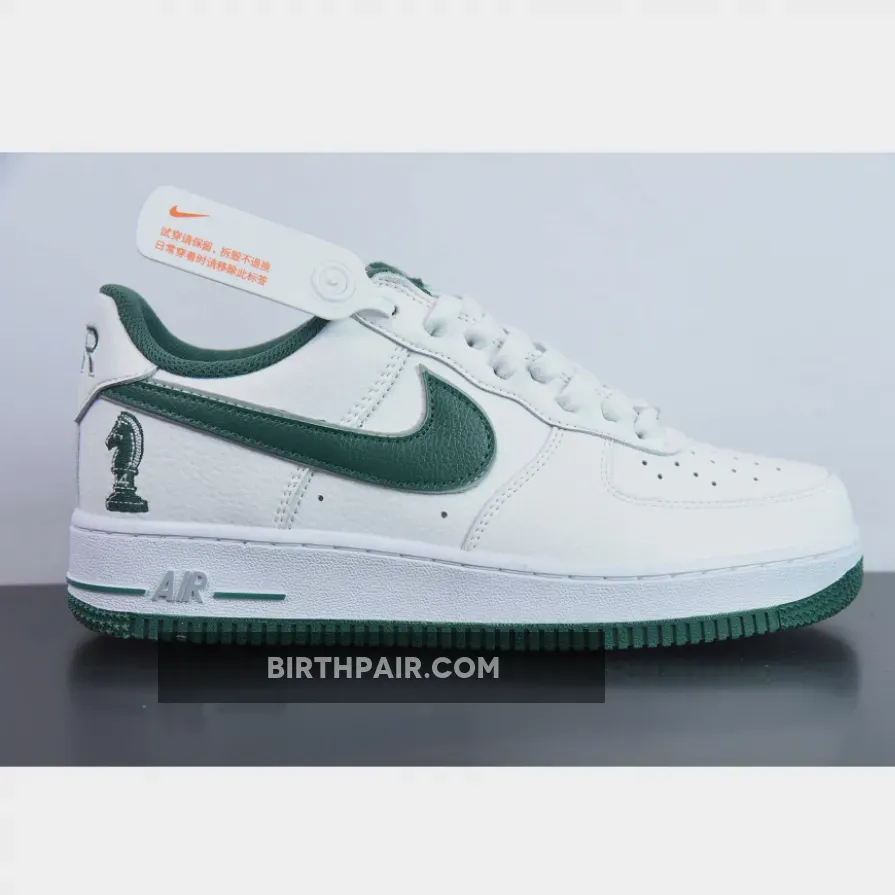 Unlike most Air Force 1s with a smooth-leather upper, these arrive with Swoosh logos fixed with a green tumbled leather textile, giving the low-top retros a premium look. The award-winning feature of this iteration is the chess piece imprinted on the lateral heels, which is a nod to Lebron James’ business partners: Maverick Carter, Rich Paul, and Randy Mims, together making up The Four Horsemen. As for the rest of the counterparts, like the interior lining, outsole, Nike tongue branding, continues the white-and-green arrangement.