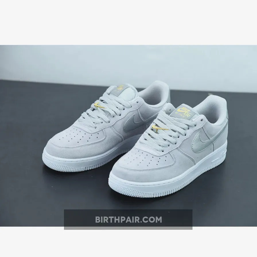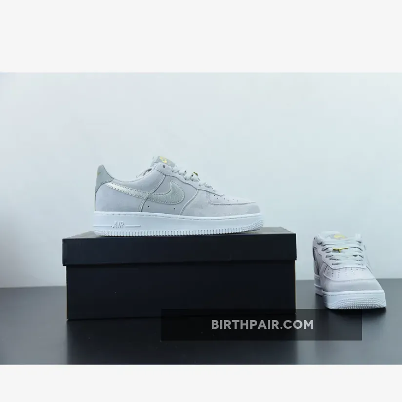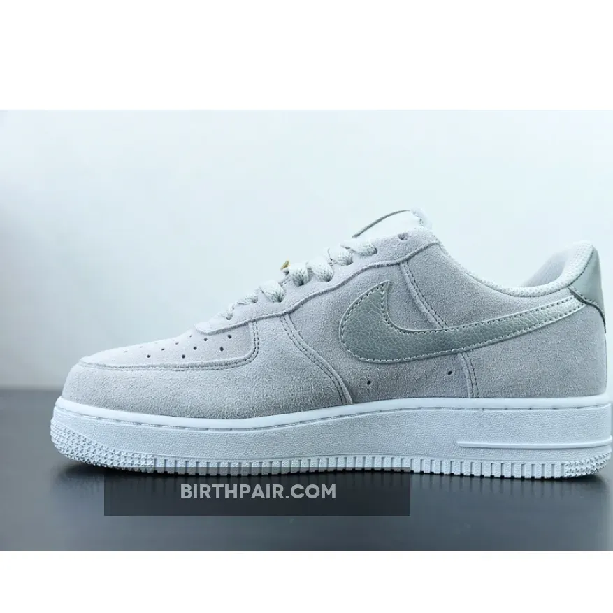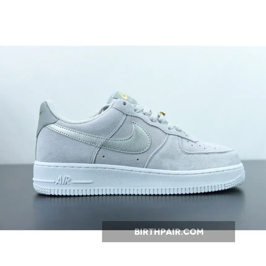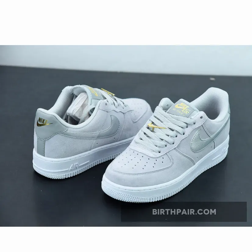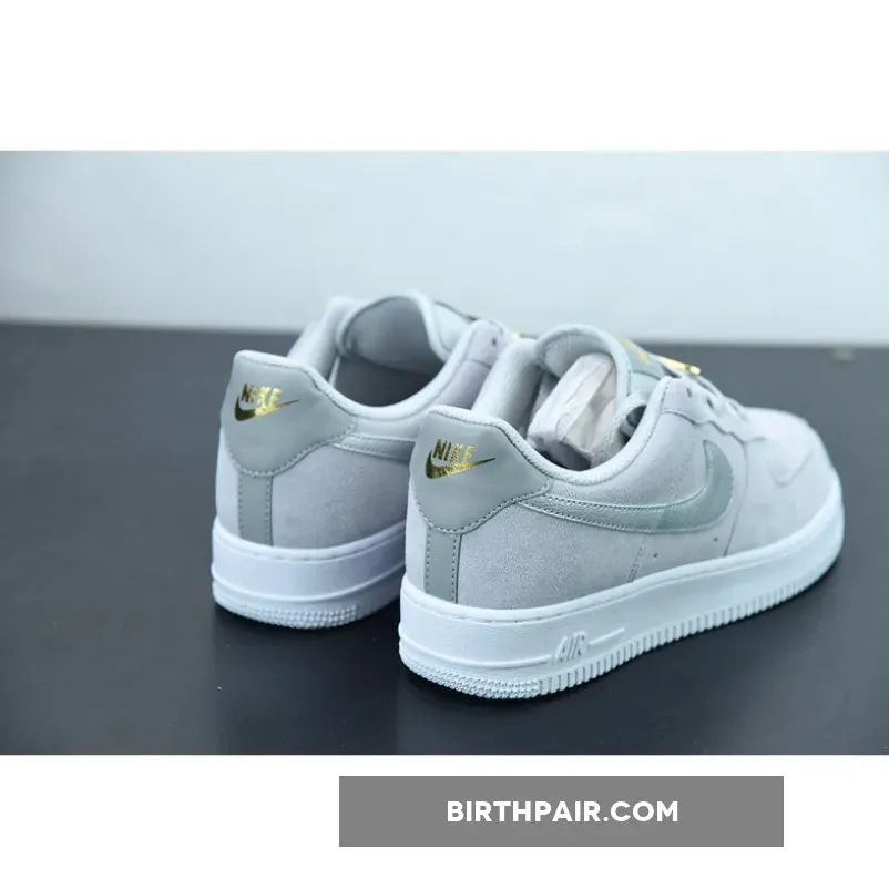 this Nike Air Force 1 Low feature Grey suede across the upper while mesh covers the tongue. Following, leather lands on the heel paired with Metallic Silver Swoosh logos on the panels. Adding a luxurious touch, Gold branding adorns the tongue, heel, and lace jewel.