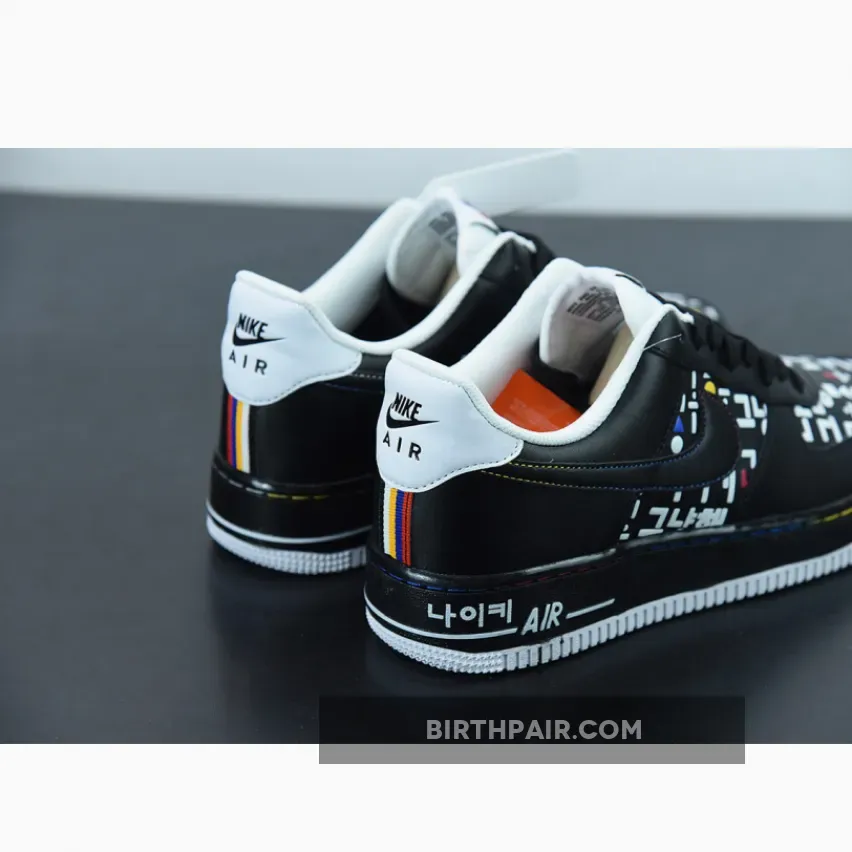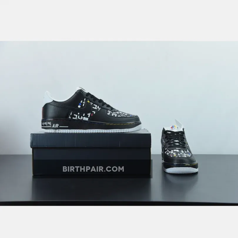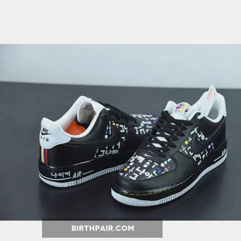 Say annyeong to the Nike Air Force 1 Low Hangul Day Black. The classic silhouette gets a makeover in celebration of Hangul Day. The black leather base is designed with Korean alphabet characters — most taking on a white font while some are in blue and red prints. The same fun palette is found in the Nike Swoosh outline, on the tongue branding and at the heel where vertical red, blue, yellow, white and black stripes extend from the counter to the sole. Sleek and modern with a touch of youthful K-pop-inspired energy, this pair is indeed a must-have. This design is also available in a cream colourway.