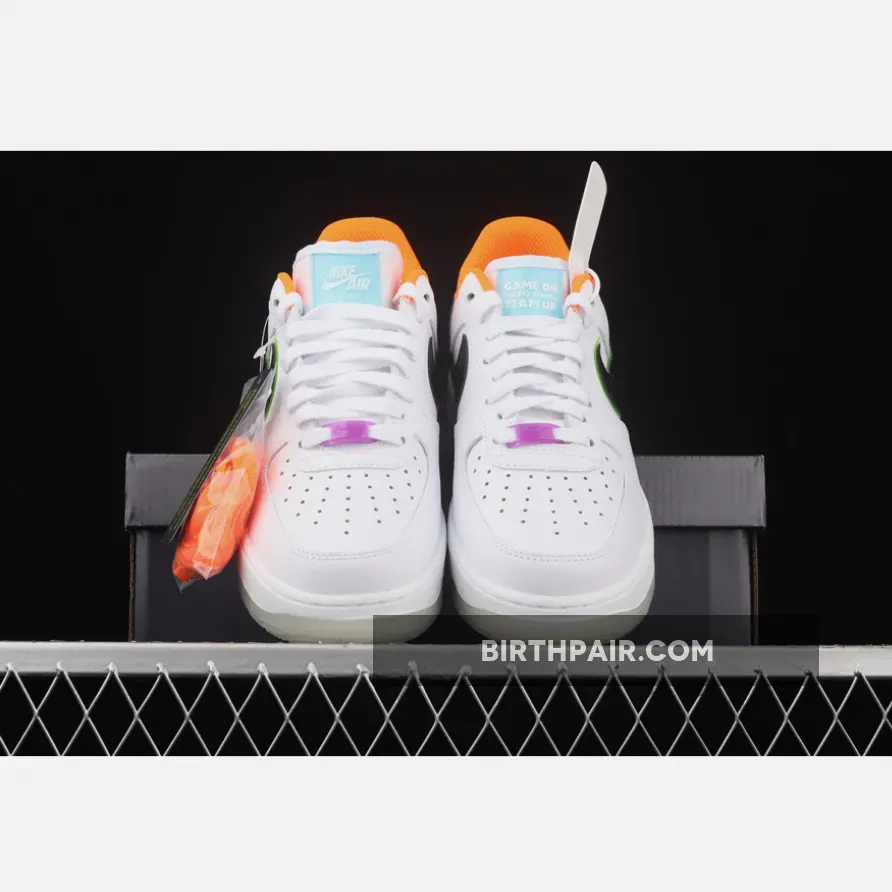 This offering of the Nike Air Force 1 features a White leather base with “Have A Good Game” debossed onto the lateral side, while its left tongue label reads “Game On / Team Up.” Other details includes the global gaming logos displayed on the translucent heel tabs along with Bright Orange sockliners. Purple lace dubraes atop glow-in-the-dark translucent outsoles completes the design.