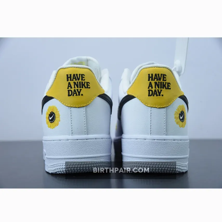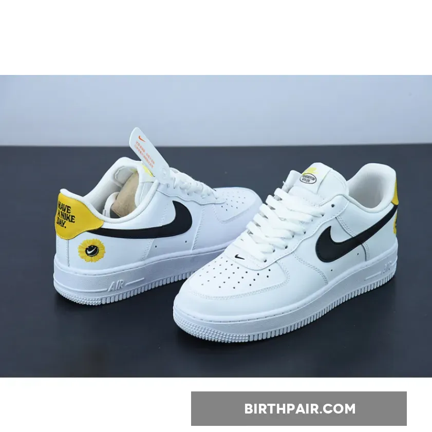 What’s fashion without a little fun? The Nike Air Force 1 Low Have A Nike Day White Black brings a dose of joyful flair to your outfit with its perky design that’s meant to put a smile on your face (or on anyone who sees it.). An all-white smooth leather upper serves as the canvas for this Air Force 1 Low. Decorating it is a sunflower image with a quirky “Nike Check smile”. More hints of yellow come in the tongue tag and at the heel tab which features a “Have A Nike Day” text. Meanwhile, black Swooshes across the lateral and medial sides balance out the bright palette.