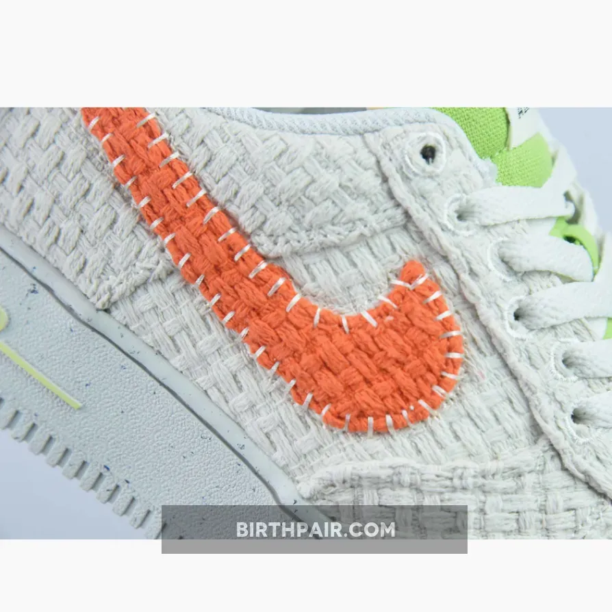 This Nike Air Force 1 Low gets engulfed in a fully knitted construction throughout the upper which incorporates recycled materials. Crafted with recycled knitted uppers in an off-white hue, the silhouette receives pops of colors via the red-orange panel swooshes, lime green padded tongues and insoles and baby blue heel tabs. Branding can be found on the exposed foam tongue’s logo, which features the swoosh, Air Force 1 and Hemp insignias, the Move to Zero Pinwheel emblem on the insoles, the Air symbol on the midsole and the stitched Nike Air badge on both heel tabs.